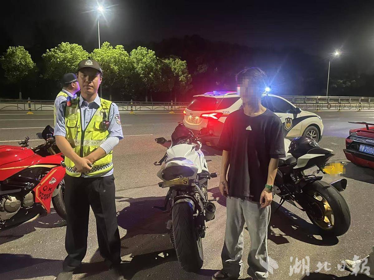 8月17日凌晨,江夏分局交通管理大队藏龙岛中队接到群众举报,称藏龙二桥方向有人炸街扰民,刺耳的引擎声划破夜空,搅乱了周边居民的美梦。