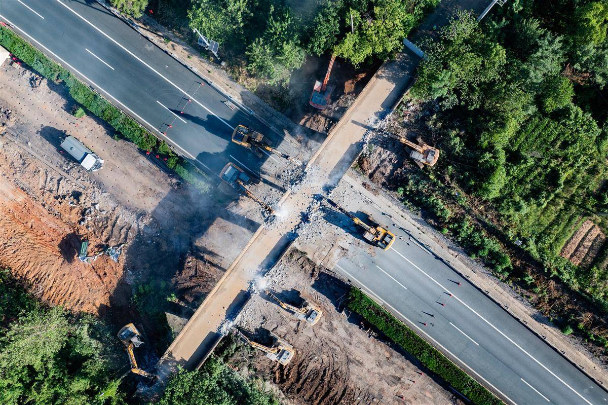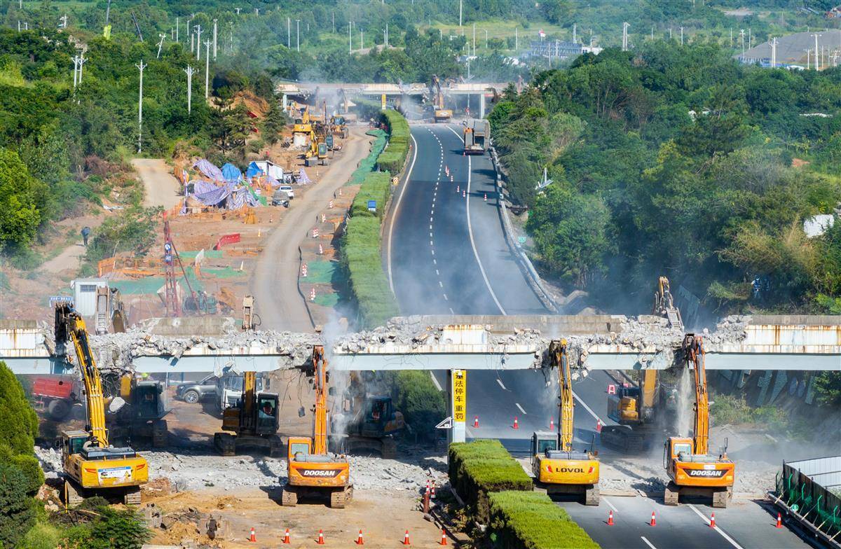 湖北日报讯 (记者戴辉、柯皓、通讯员卢家国、张文璟)8月20日7时30分开始,一场规模浩大的拆桥战役打响——12小时内,汉宜高速武汉西至永安段横跨的9座天桥被同步拆除,当晚18时,道路恢复通行。这场高效集约的“多桥联拆”作业,标志着沪渝高速武汉至宜昌段改扩建工程(汉宜改扩建项目)进入全面加速阶段。
