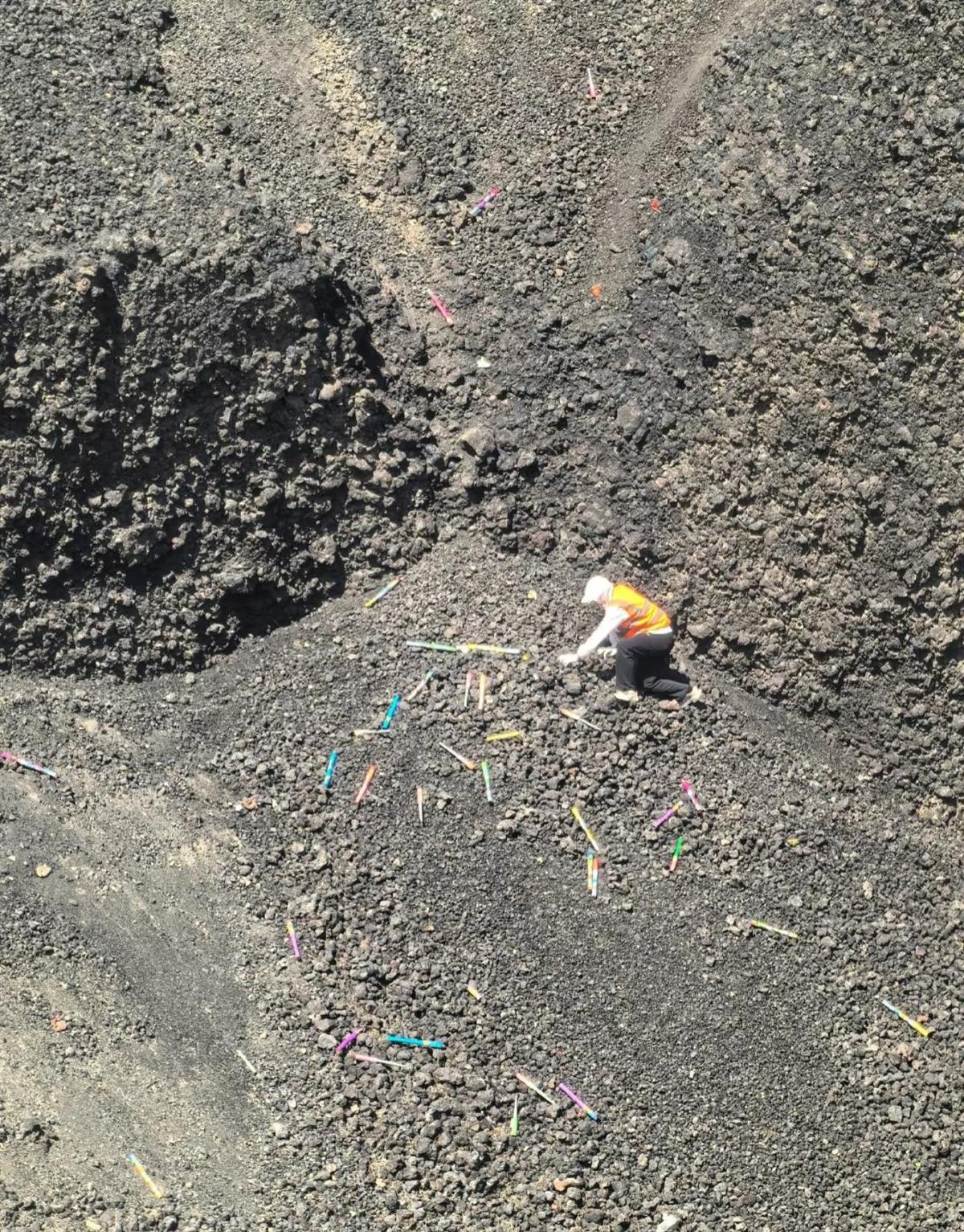 景区保洁员清理火山坑中的烟雾棒(网友供图)