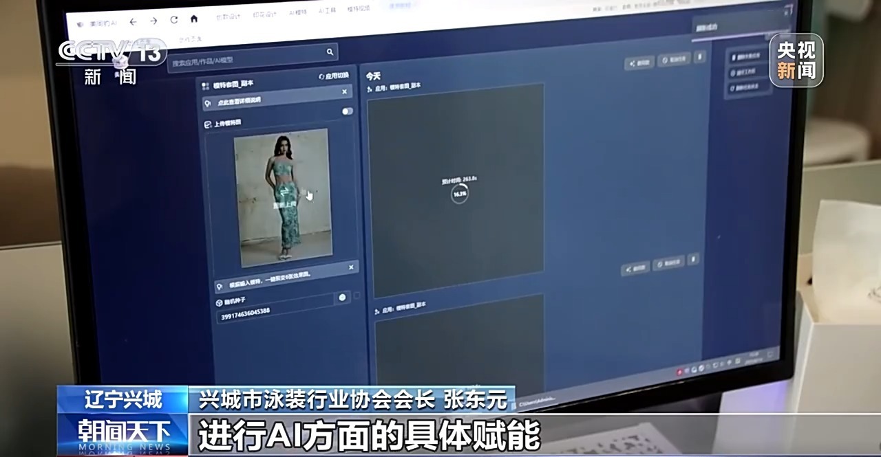 经过多年发展,辽宁兴城这座小城的泳装已成长为年产2亿件套、占全球25%市场份额的产业集群,如今这里已有1300余个自主品牌。而作为快时尚品类,泳装更新换代快,对设计需求量大,新兴的AI设计师正成了这里很多企业的新选择。