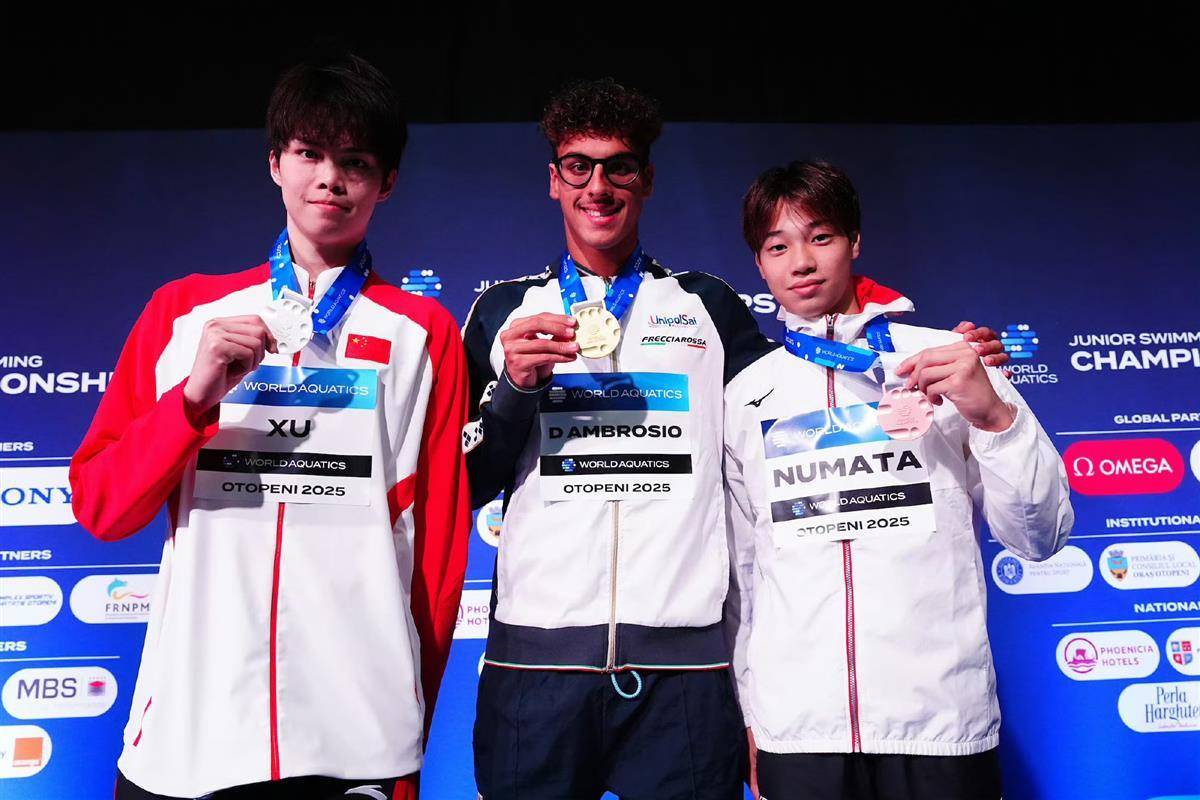 在杨佩琪斩获第二金之前,在首个比赛日斩获男子400米自由泳铜牌的我省小将徐海博再度登上领奖台。在男子200米自由泳决赛中,身处第3道的他完成第一个转身后排在第五位,半程过后上升到第四位。后半程,他持续超越对手,最终以1分46秒67获得亚军,并刷新了今年全国冠军赛1分47秒10的个人最好成绩。意大利选手卡洛斯·丹布罗西奥打破赛会纪录夺冠。