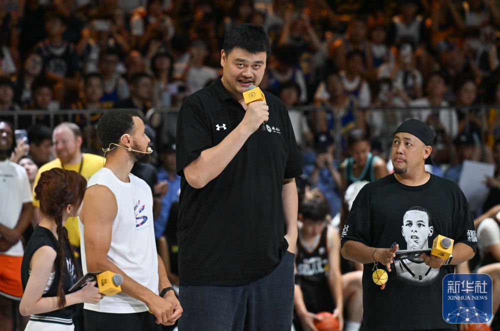 8月20日,姚明亮相在山城重庆举办的“库里训练营”活动,并观看学员比赛。
