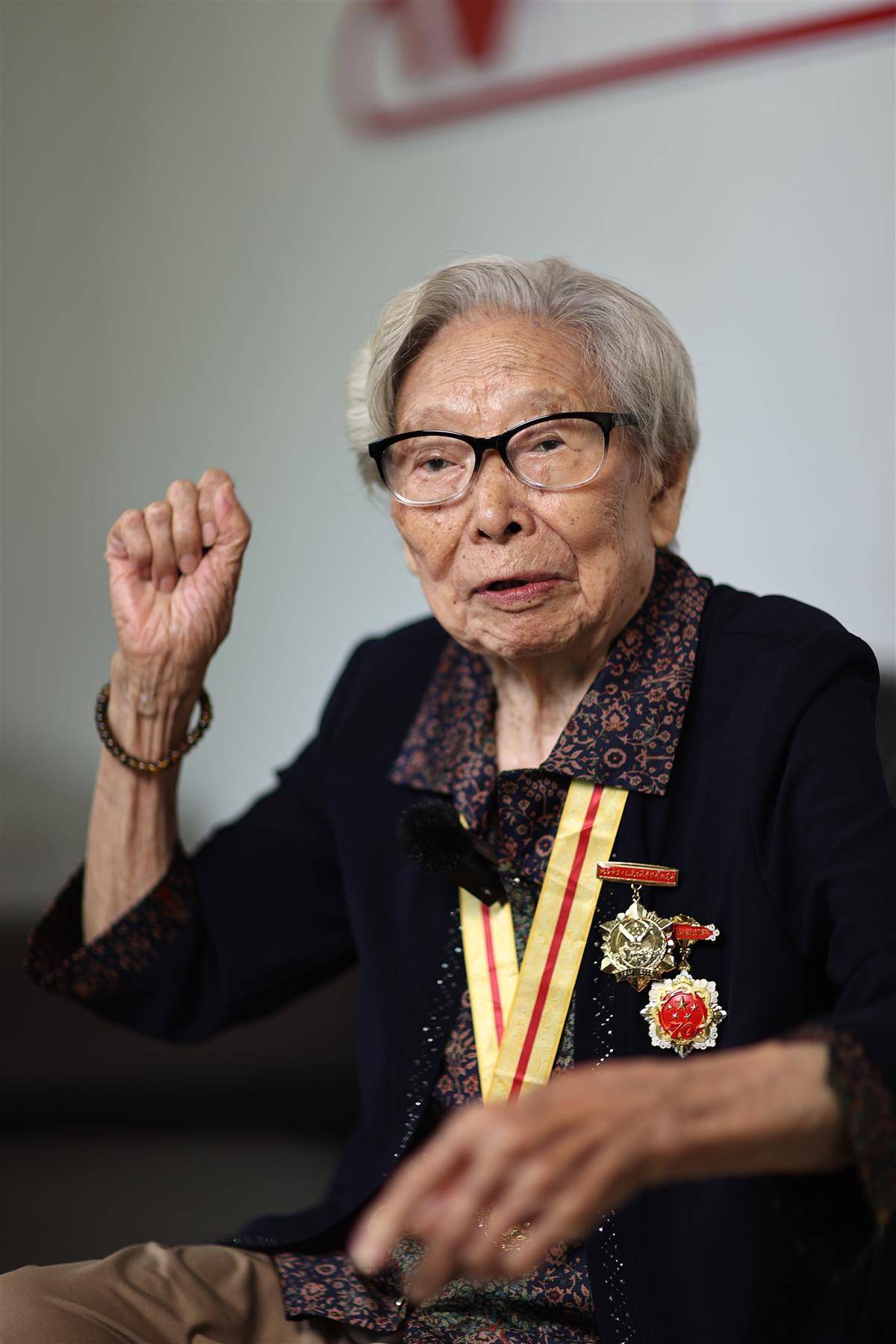 105岁的邹崇芬依然清晰记得,“日寇投降”的消息传来时,整个连队瞬间沸腾,大家抱在一起又哭又笑,泪水里全是胜利的狂喜;
