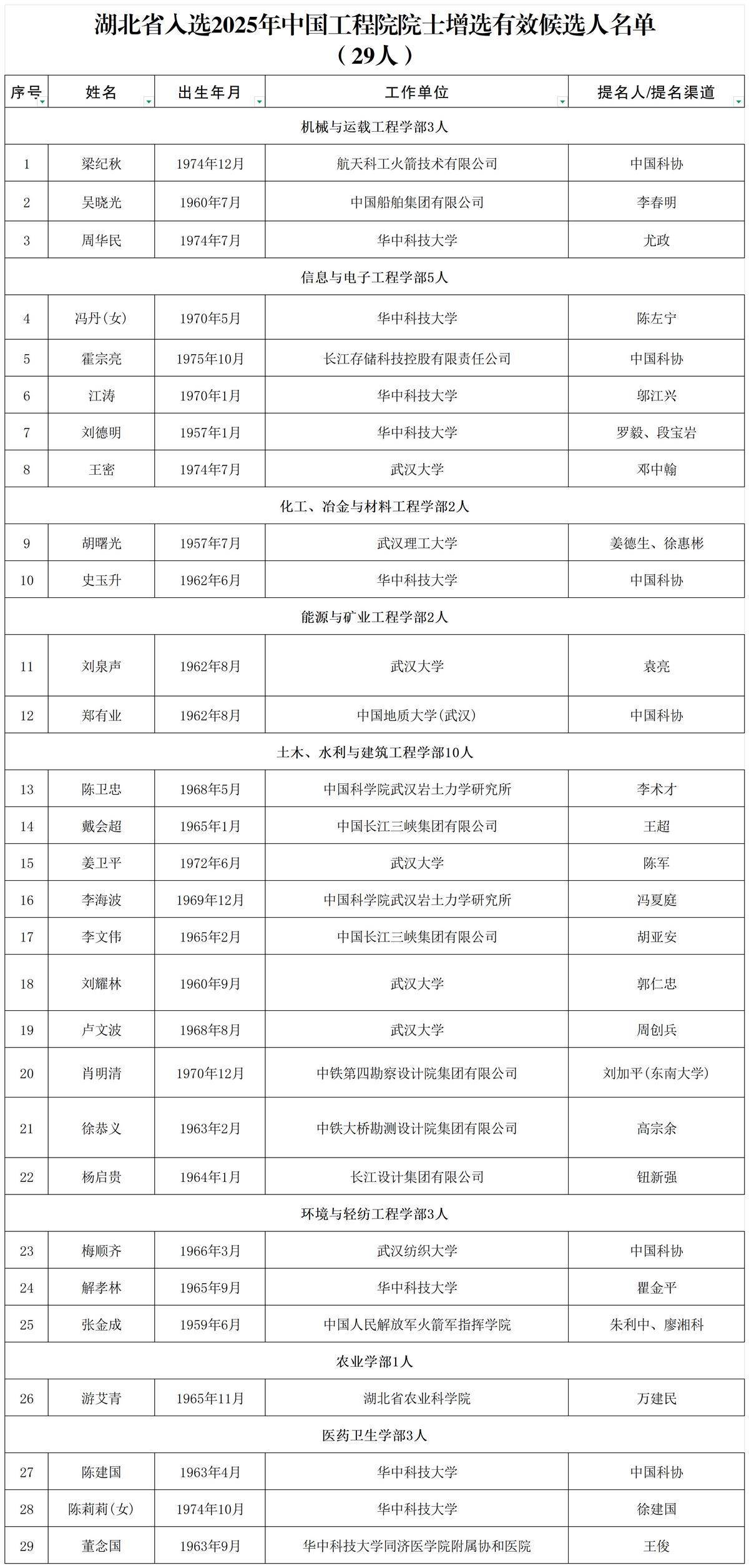 关于公布中国工程院2025年院士增选有效候选人名单的公告