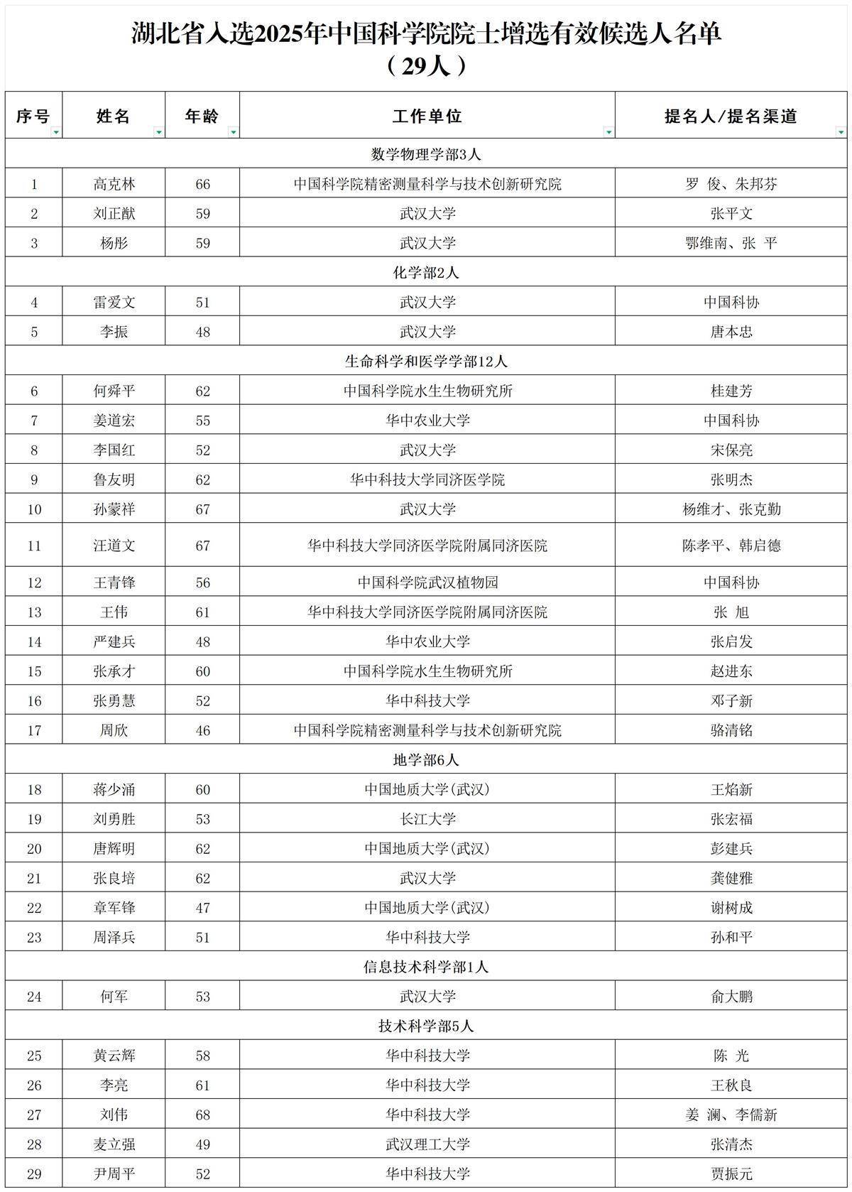 武汉大学13位专家学者进入有效候选人名单,其中,中国科学院院士增选有效候选人8位,中国工程院院士增选有效候选人5位;