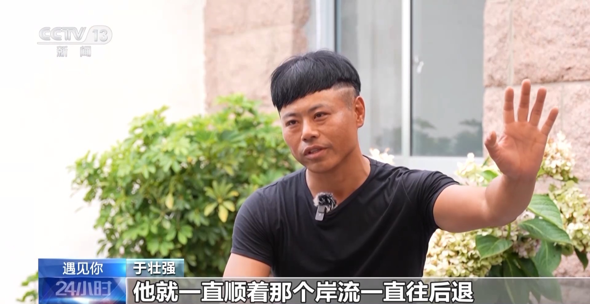 于壮强:退了至少也有将近100米远。他有救生圈,脚够不到底,就顺着那个岸流一直往后退。