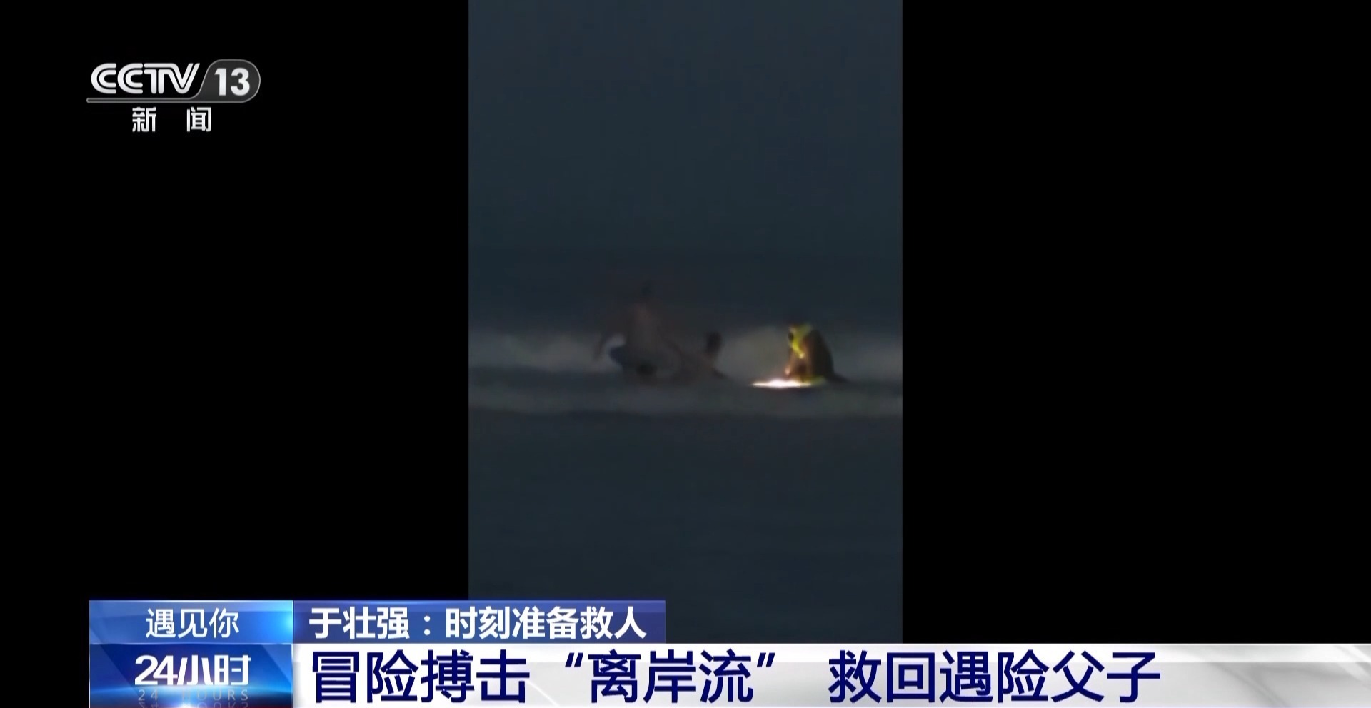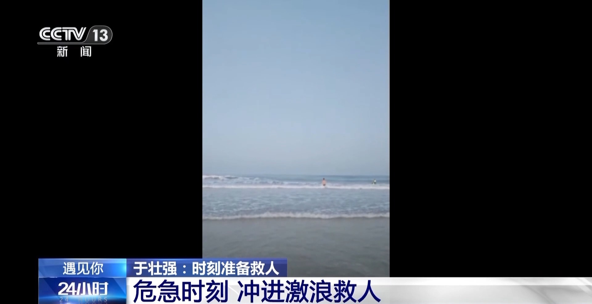 于壮强:能听到里面喊救命,当时那个浪特别大,离岸流把那个人越推越远,等到我游到他身边的时候,他离岸边的距离已经很远很远了。