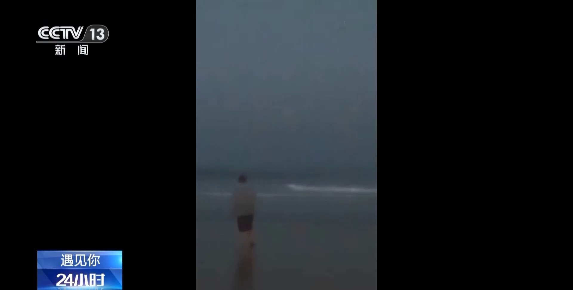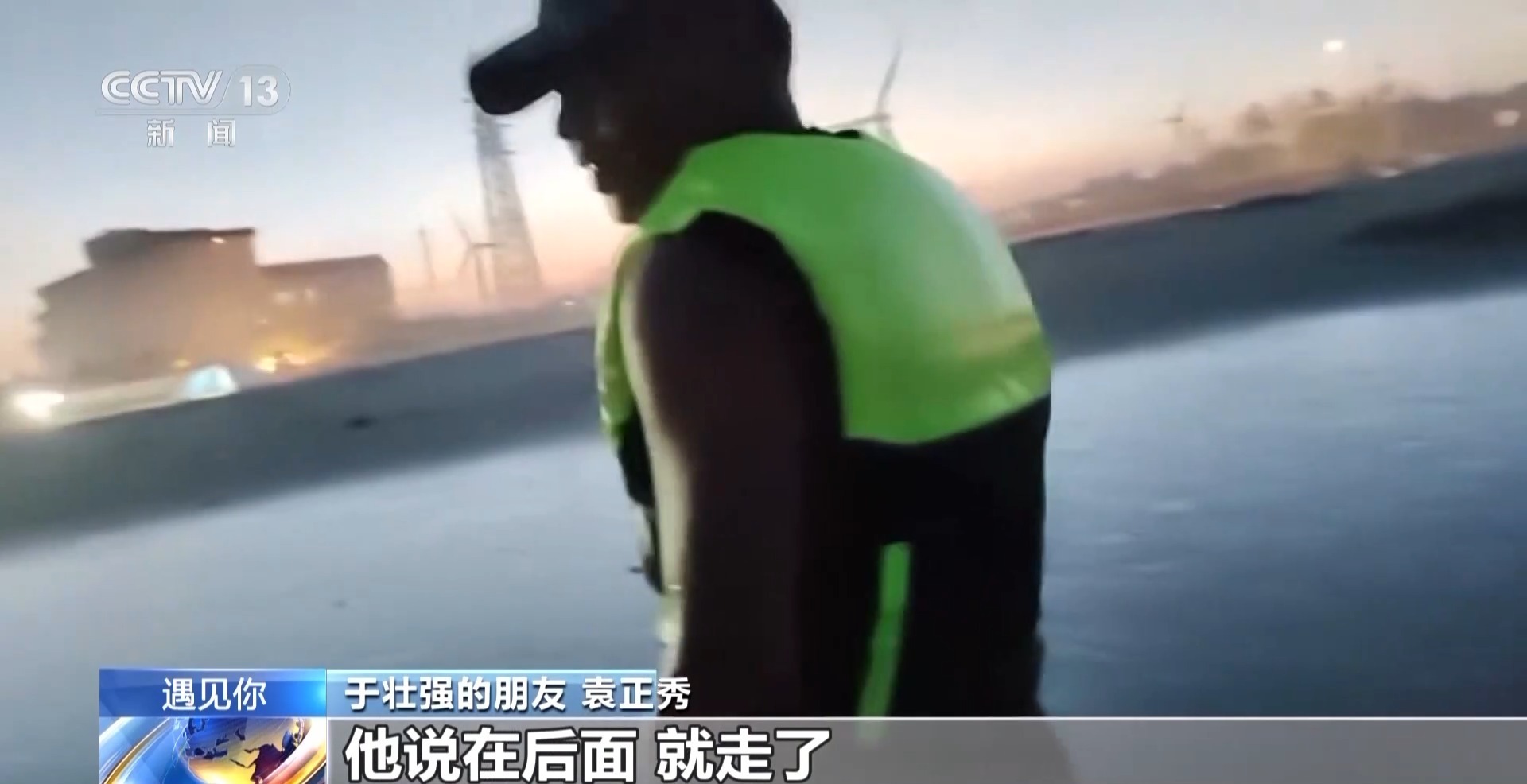 于壮强朋友 袁正秀:我就给于壮强指挥着,看往哪个方向走。因为天黑,再一个就是浪,他迎着应该是三四波浪吧,才正式进入水里,艰难地游着。