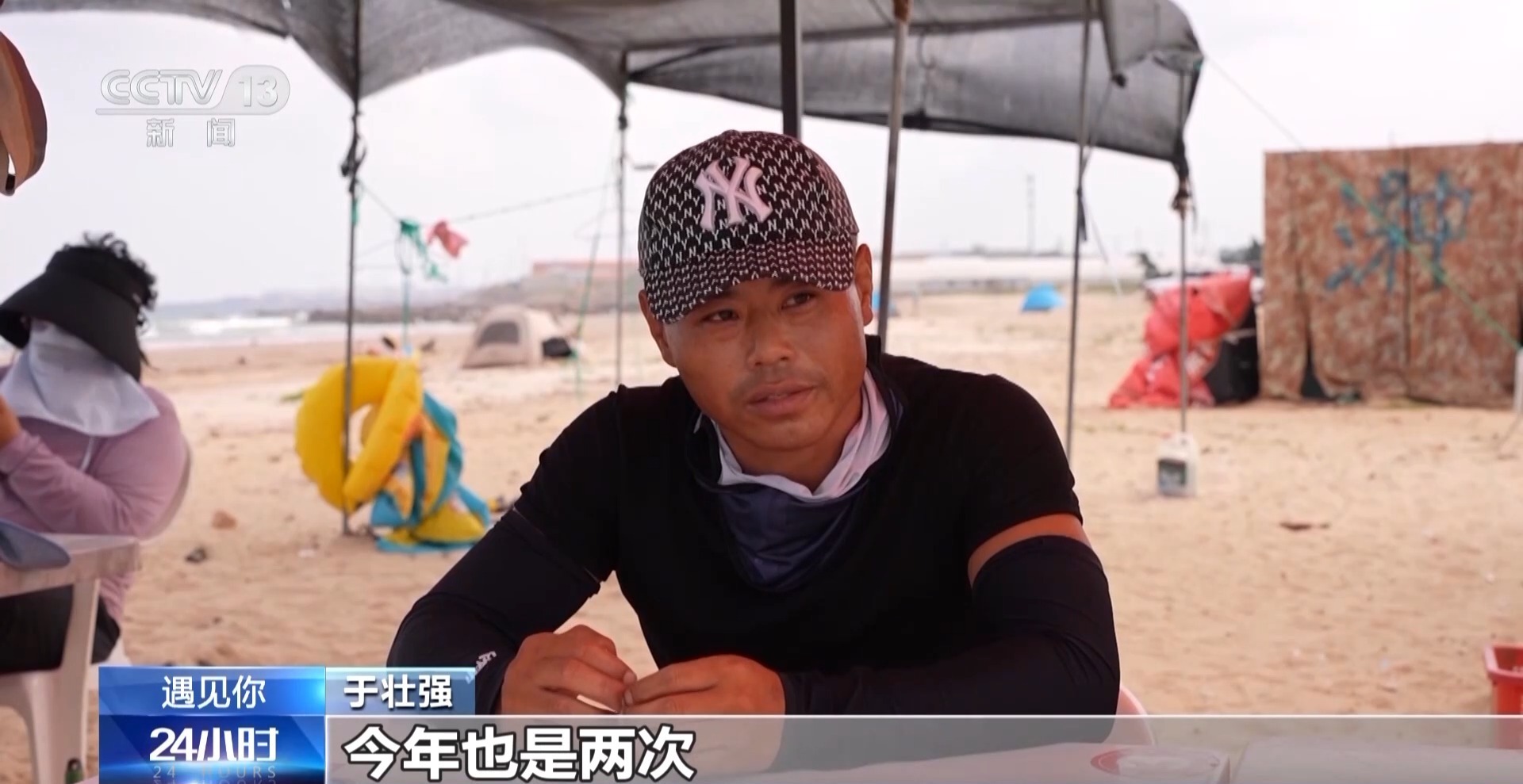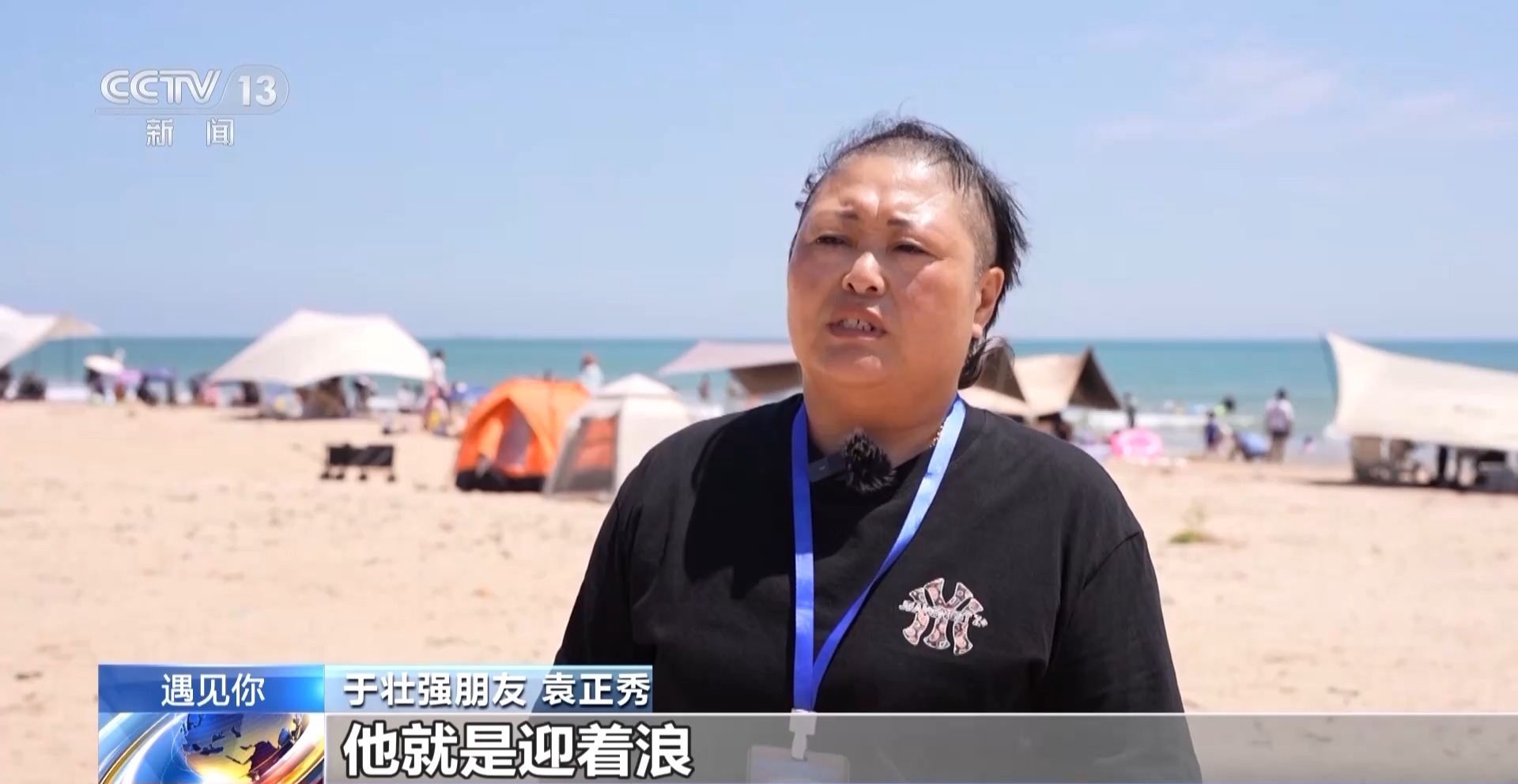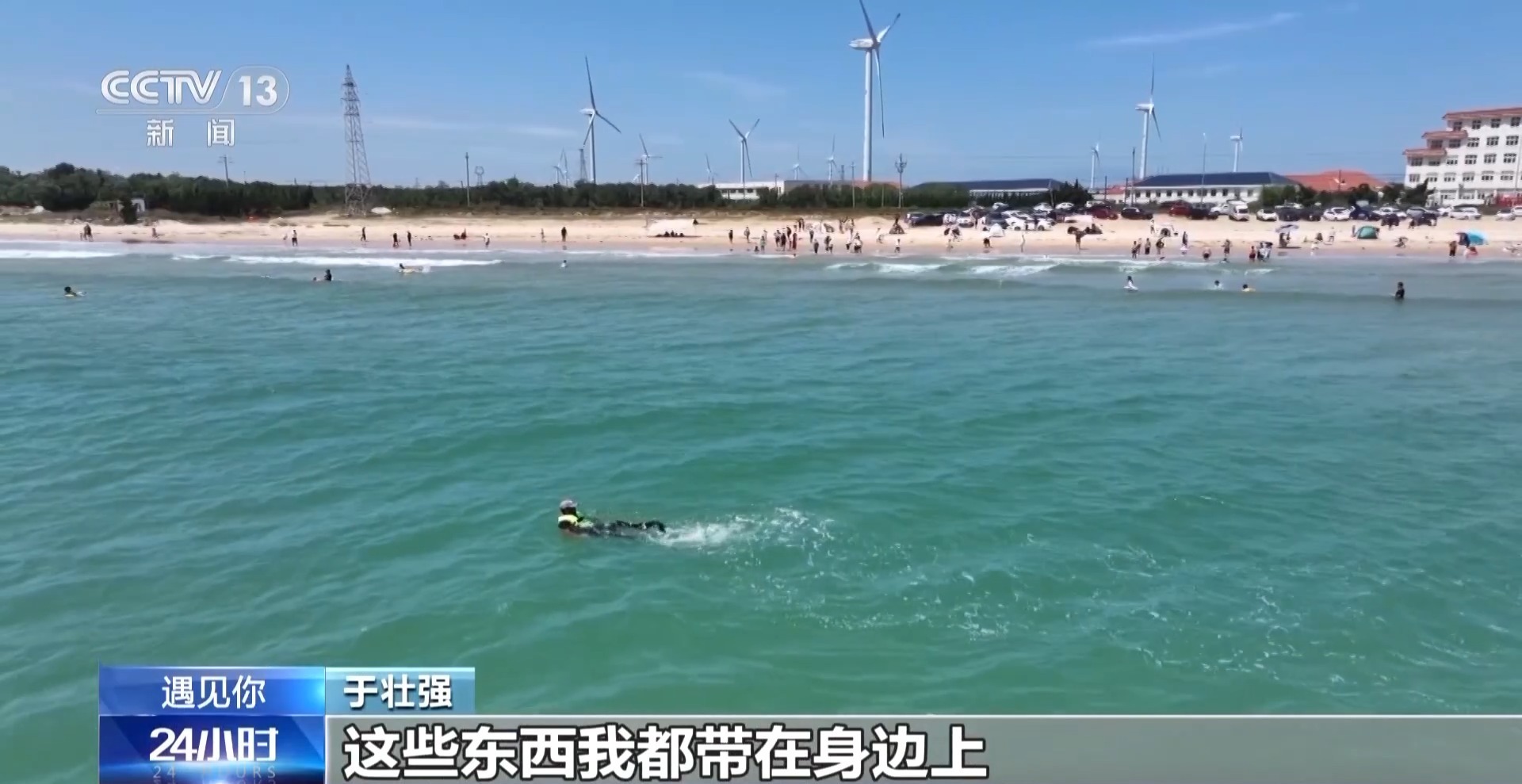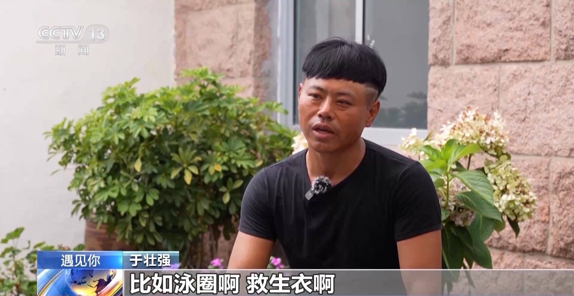 于壮强:第一次救人,是我跟那个摆摊的大哥,我们俩认识之后他一直在海边摆摊,我没事我就上他那去玩,那天在那玩,突然有个喊救命的。每次上海边我也喜欢游泳,虽然我不太会游,但是我游的时候必须穿救生衣,所以每次来海滩玩的时候,这些东西我都带在身边,我就顺手把我这些救生设备带上,下去救人。