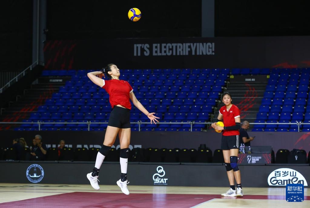 当日,中国女排在泰国清迈进行赛前训练,备战将于8月22日至9月7日在泰国举行的2025年世界女排锦标赛。