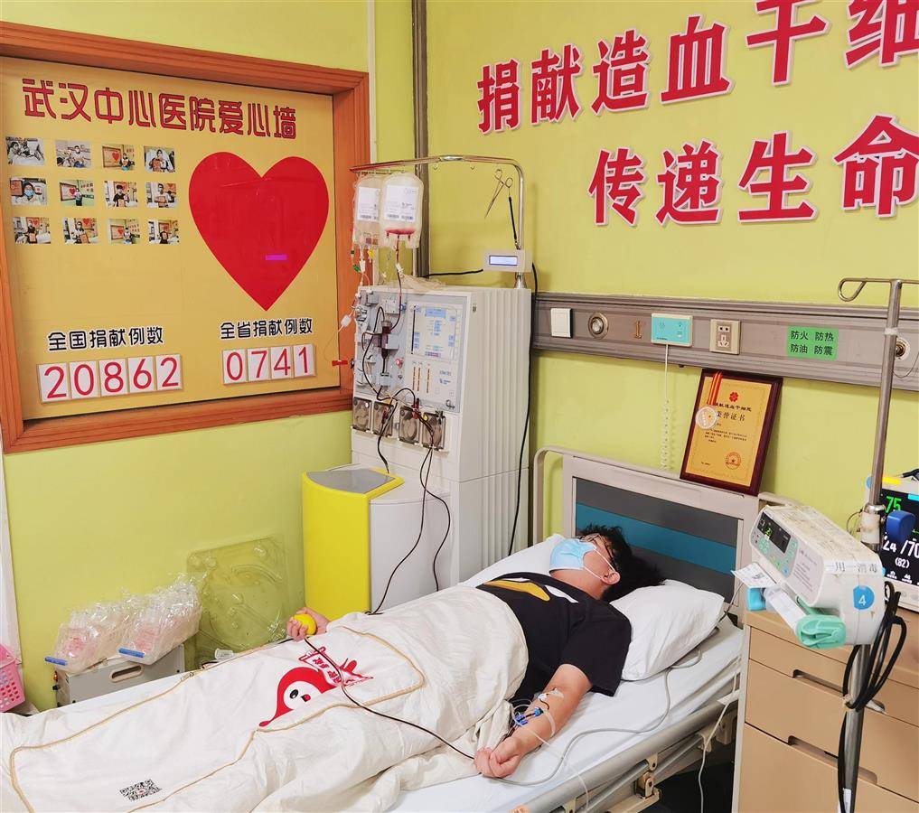 8月22日,武汉某指定采集医院内,刚参加工作两个月的刘先生完成造血干细胞捐献,一袋承载生命希望的造血干细胞悬液顺利收集,将为华东地区一名白血病患者送去重生曙光。