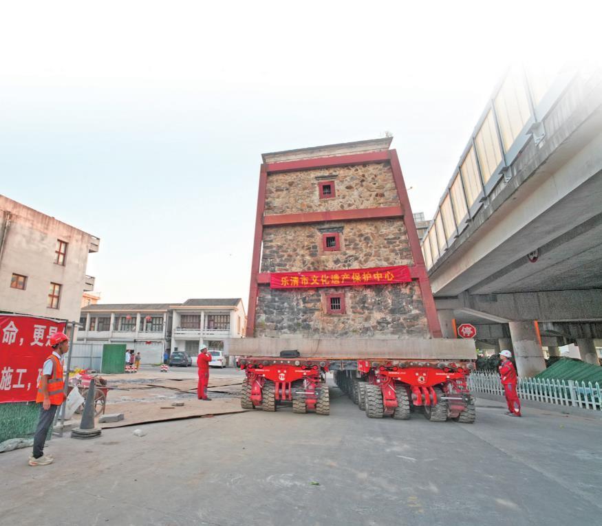 西塘碉楼在平移中(图片来源:乐清发布)