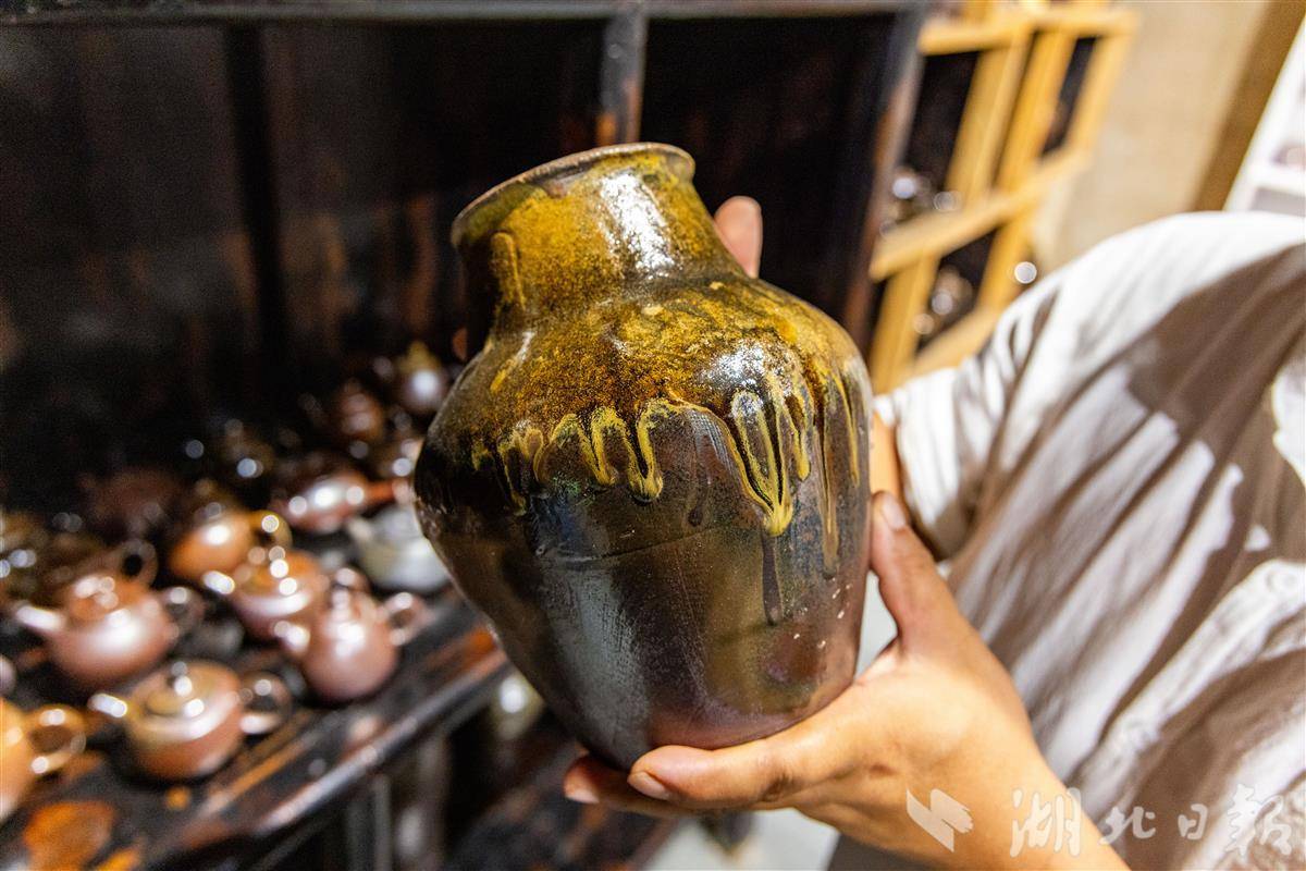 柴烧罐表面的纹理全凭自然形成,无法复制。(湖北日报全媒记者 成熔兴 摄)