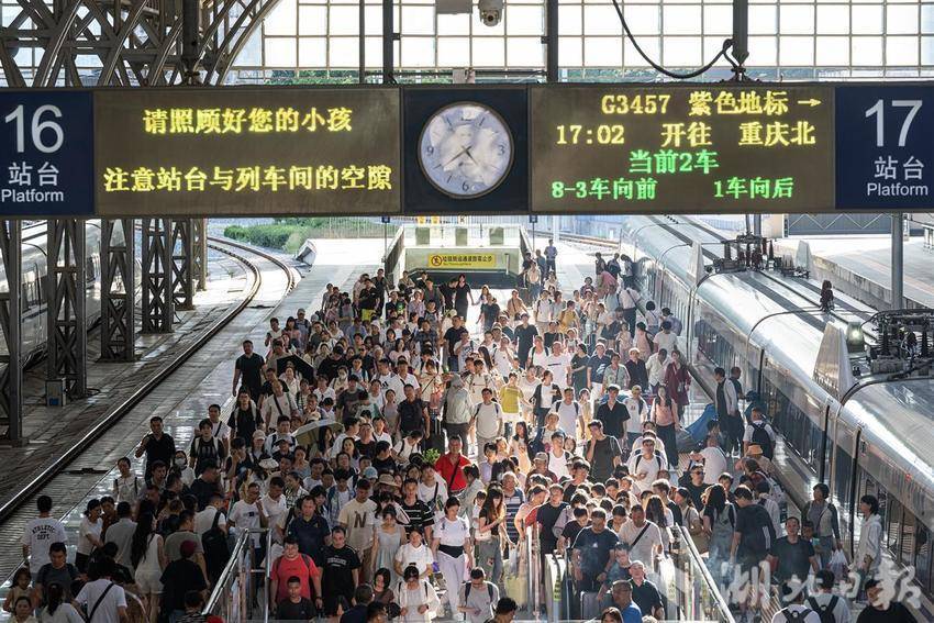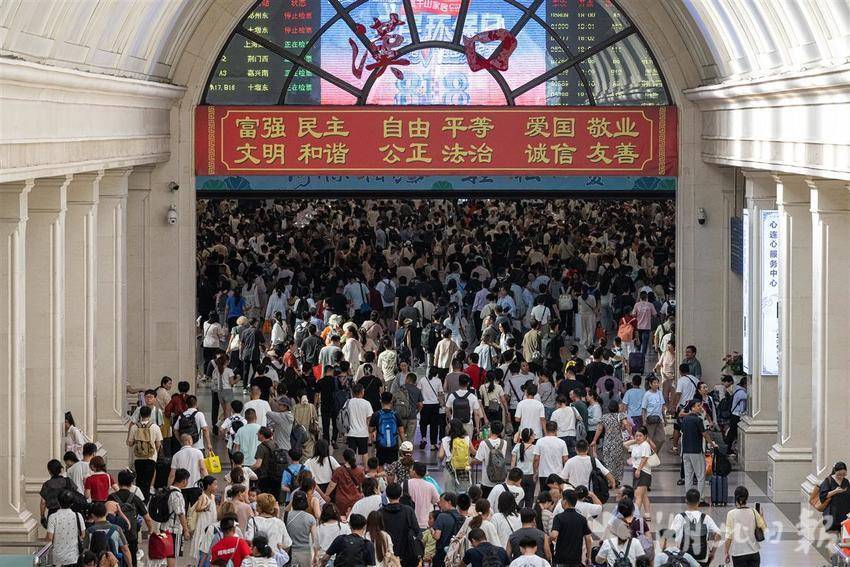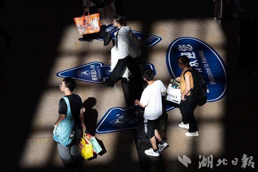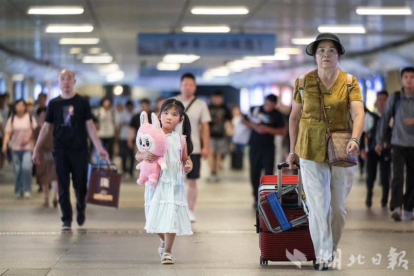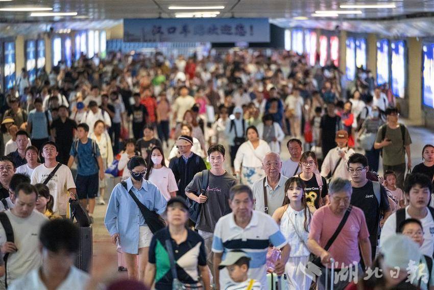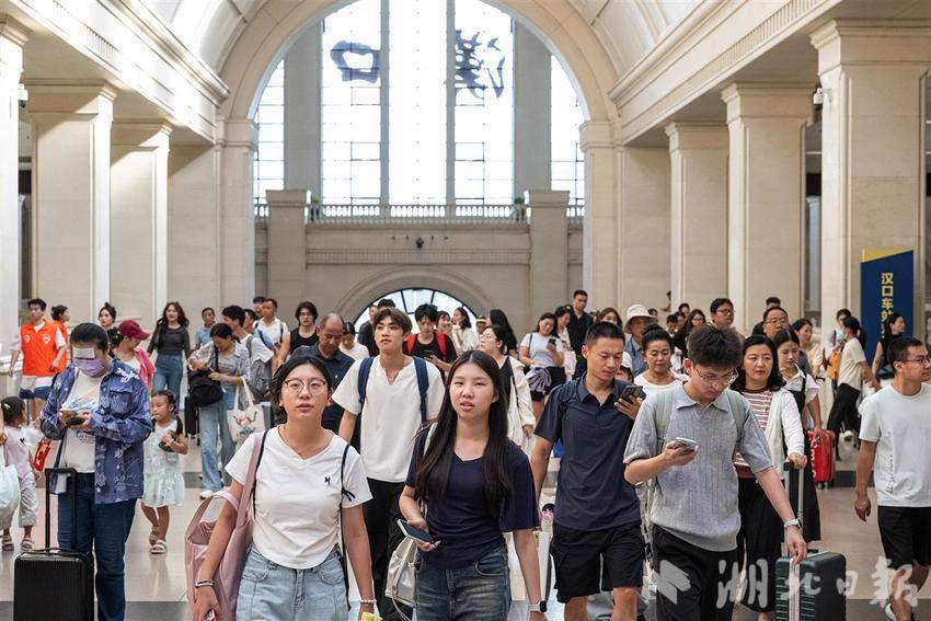 8月24日,旅客抵达汉口站。随着暑期进入尾声,中小学校即将开学,武汉迎来铁路暑运客流返程高峰。(湖北日报全媒记者 任勇 摄)