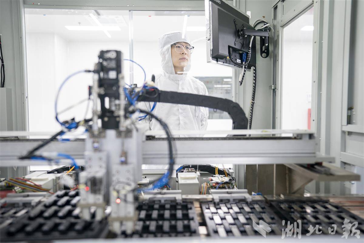 华工科技光电子信息研创园暨出口基地内,正繁忙生产。(湖北日报全媒记者 魏铼 摄)