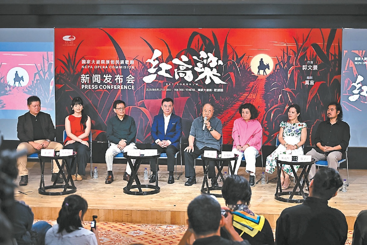 25日,国家大剧院副院长张尧,歌剧《红高粱》编剧莫言、作曲家郭文景、导演王筱頔等核心主创,与宋元明、乌列热、郭子照、王冲等主演一同现身国家大剧院,详解歌剧《红高粱》创作历程及精彩看点。