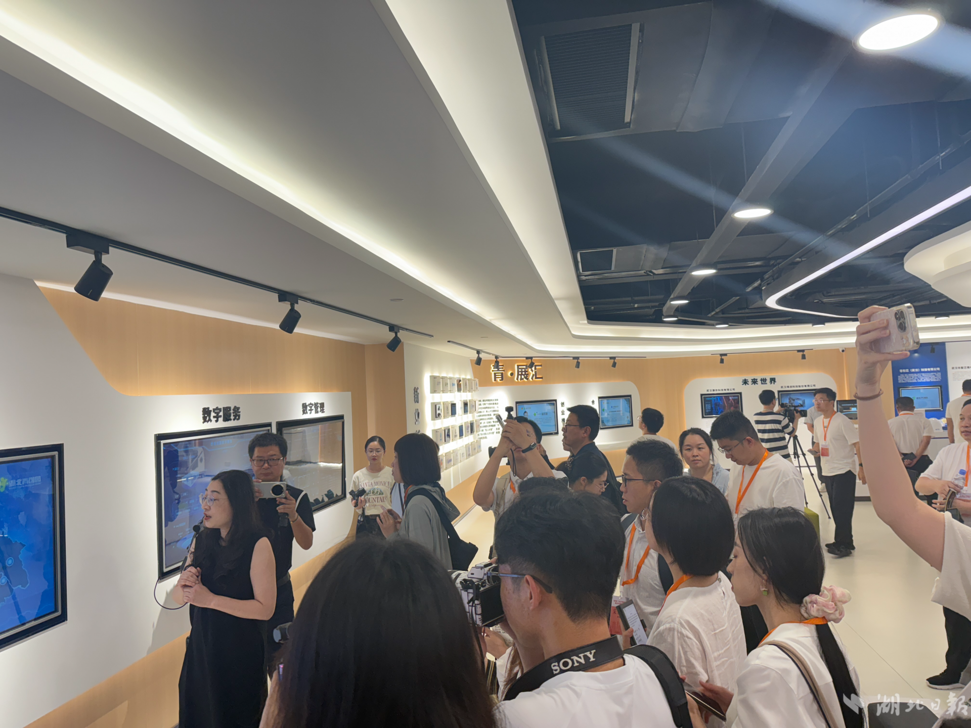 在湖北青创园(光谷)示范园,共享会议室设施完备、智能办公系统高效便捷,各类现代化创业空间错落分布。记者们边走边看,不时驻足与创业者交流,感受这片热土上的创新脉动。
