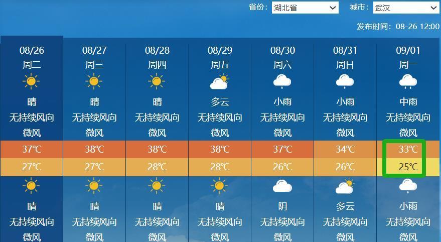 降雨降温的好消息来了!31日开始至9月初武汉降水增多,高温强度明显减弱。