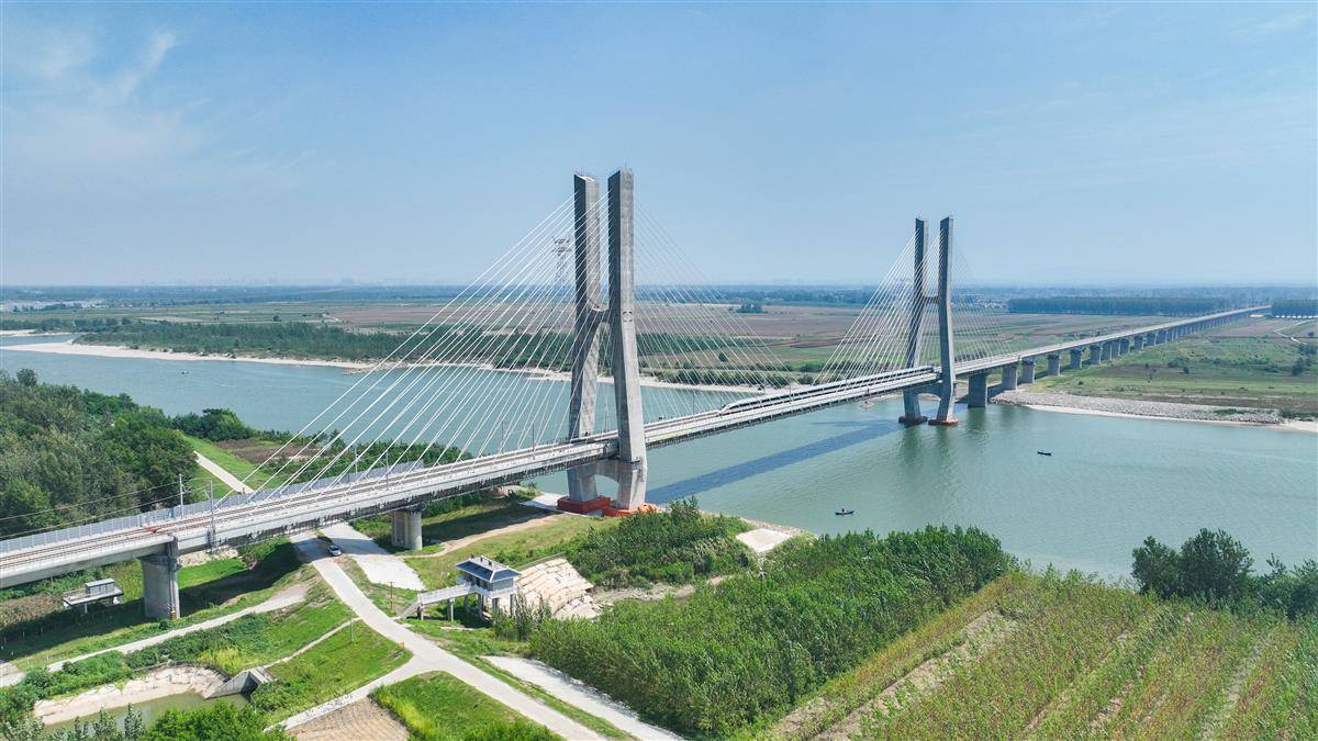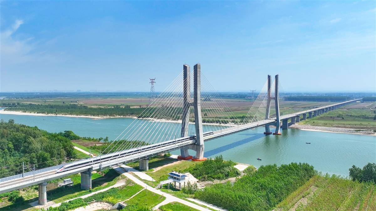 高铁列车通过中铁十一局承建的钟祥汉江特大桥。(湖北日报通讯员 石伊 摄)
