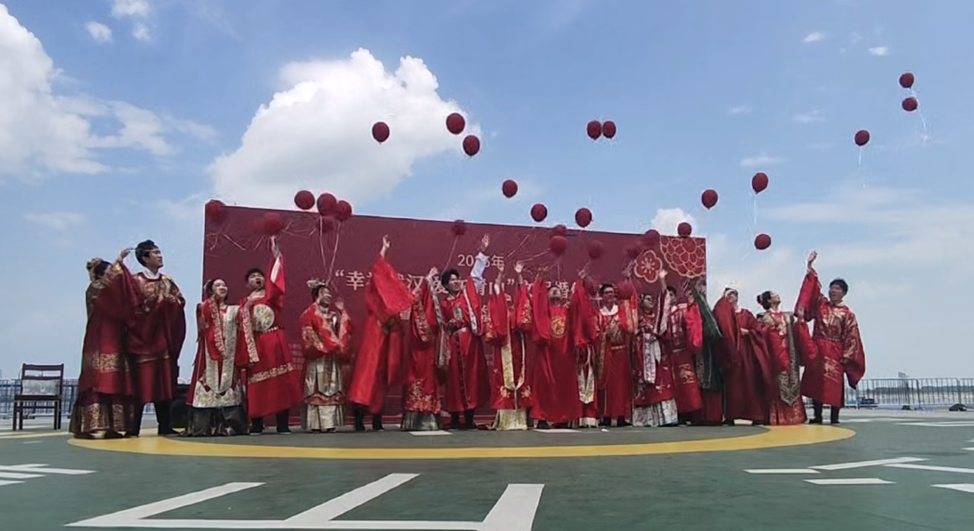 除了保障登记需求,湖北多地婚登处还以“七夕”为契机,推出一系列国风主题活动,为新人增添浪漫与仪式感。在“中国七夕文化之乡”十堰郧西,77对新人受邀参加集体婚礼,体验传统仪式,感受中华婚俗的典雅魅力与深厚底蕴;宜都婚姻登记处鲟龙水街登记点,不仅有集体颁证仪式,新人还能动手参与七夕民俗手工活动,在传统韵味中感受彼此的默契。武汉青山区,新人们不仅可以选择江滩边领证,还可以报名参加中式集体婚礼,参与城市巡游;武昌区民政局结婚登记处现场设置传统“六礼”打卡,举行集体颁证仪式,还在武商梦时代开展大型青年联谊活动,为单身青年搭建交友平台,让七夕的浪漫传递给更多人。