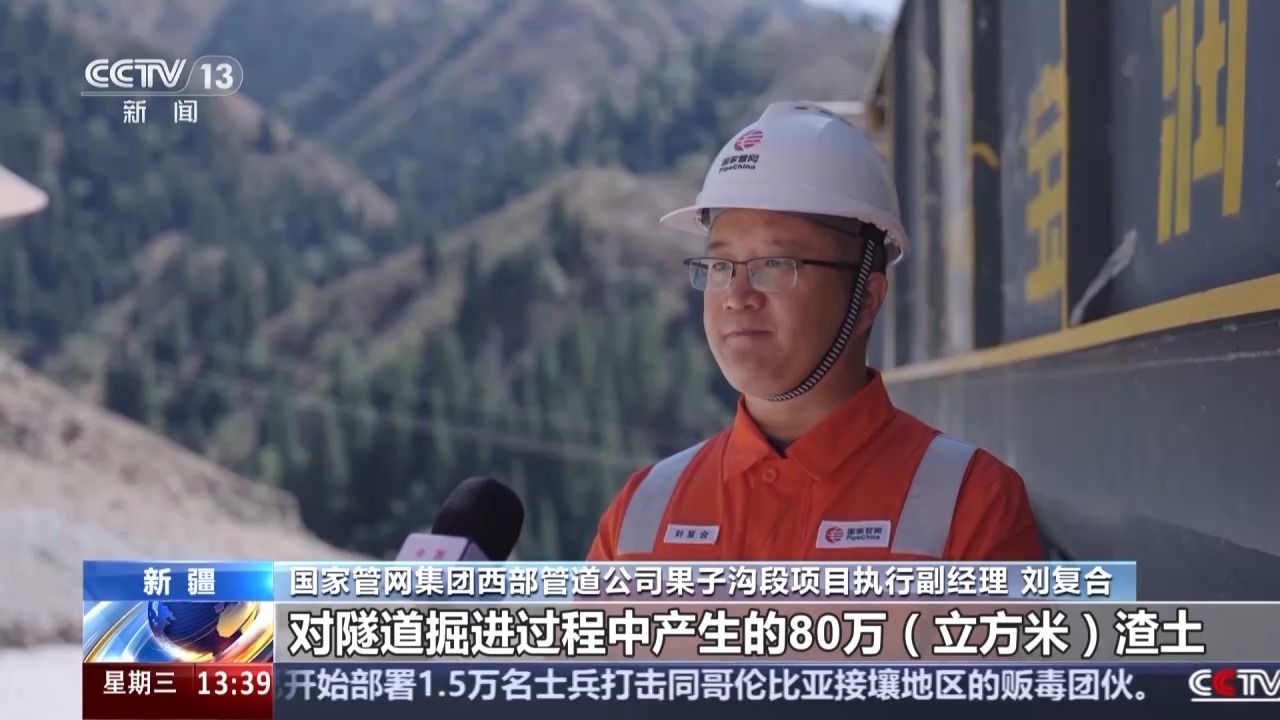 国家管网集团西部管道公司果子沟段项目执行副经理 刘复合:为了保护果子沟的施工环境,对隧道掘进过程中产生的80万立方米渣土全部实施综合利用,其中部分用于管道回填,剩余60万立方米全部运出果子沟,用于地方环境修复及城镇建设,节约工程建设用地26公顷。