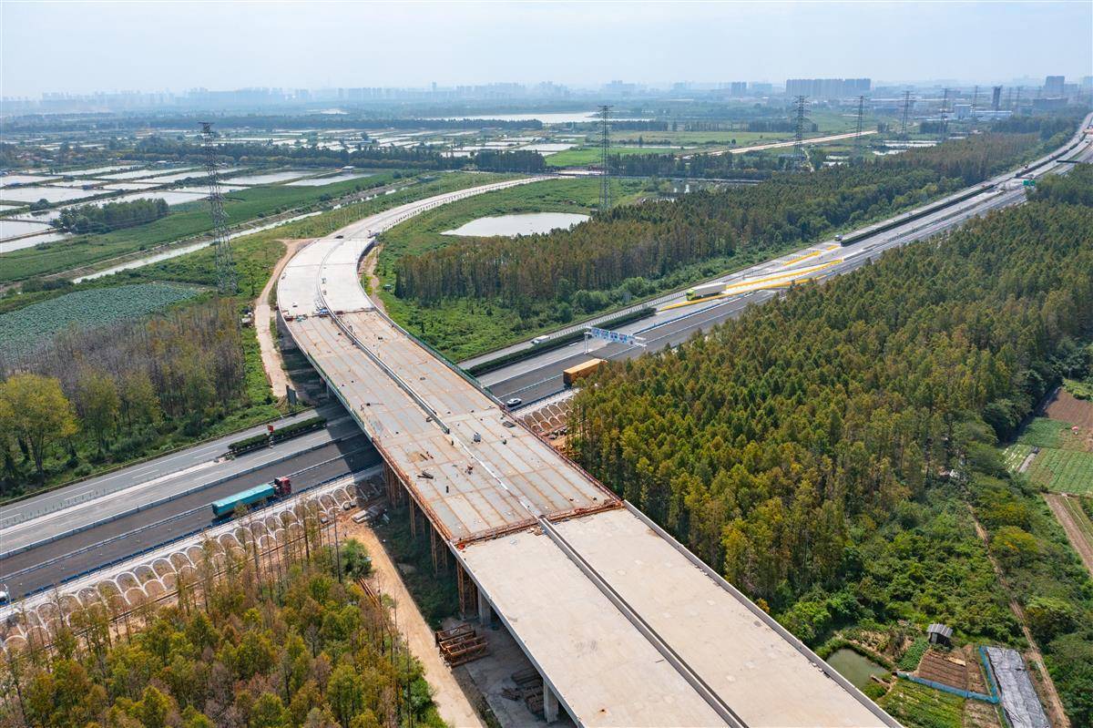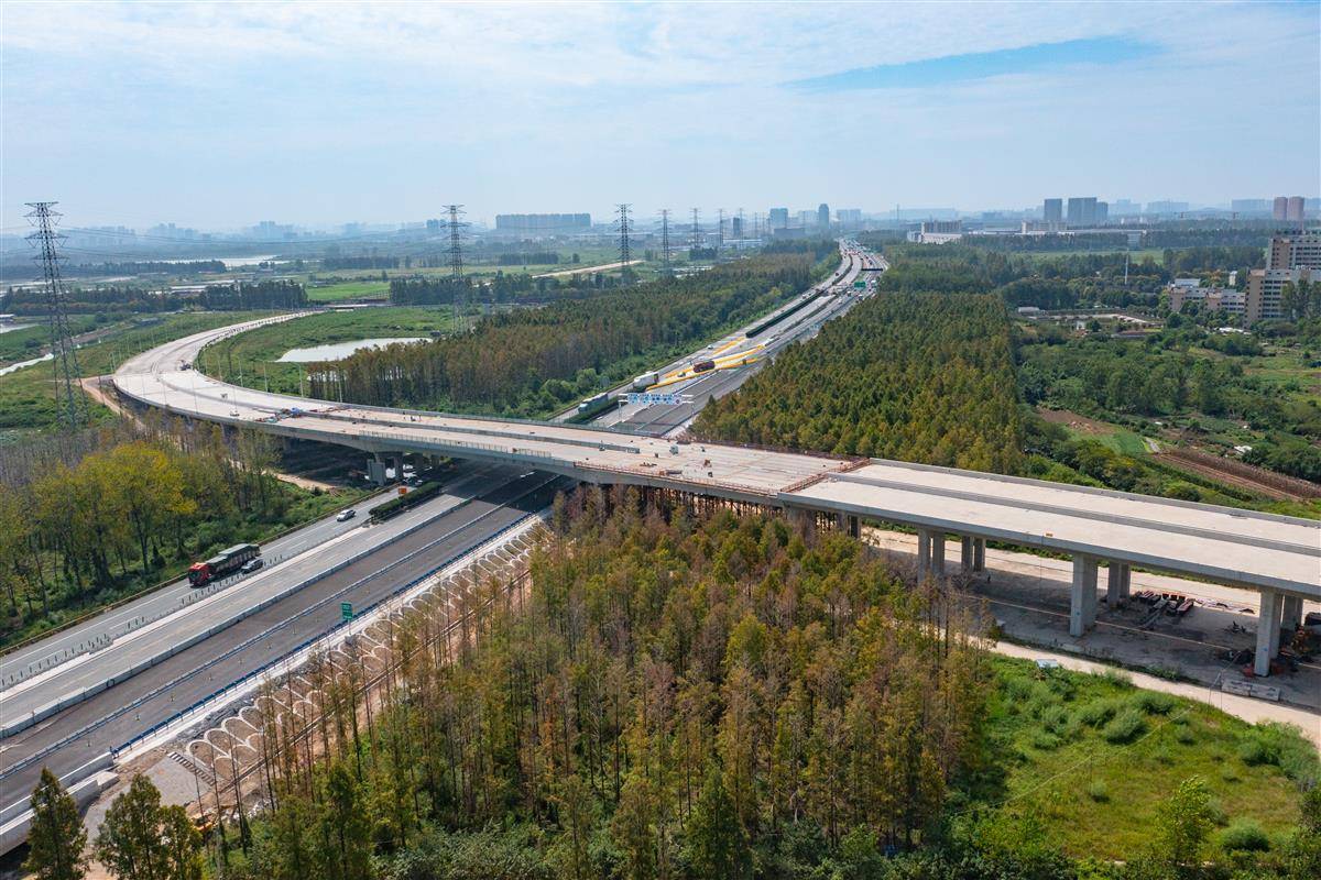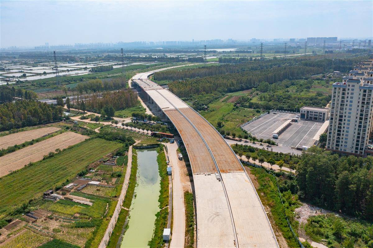 2025年8月26日,航拍已经贯通的金山大道西延线二期跨京港澳高速桥。据了解,位于武汉市临空港经济开发区的金山大道西延线二期工程主线长5.98公里,是该区“八横十一纵”路网的关键“一横”,建成后将成为串联东西湖区主、副城区的主干通道。工程计划年内完工,通车后路线与107国道平行,推动区域路网成环成网,承担主干道功能。作为武汉临港经开区东西向主干道及国家物流枢纽集散通道,它将提升交通效率、拉动区域发展,同时依托湖光水色打造生态景观走廊,促进产城融合与绿色协调。(湖北日报全媒记者 倪娜 摄)