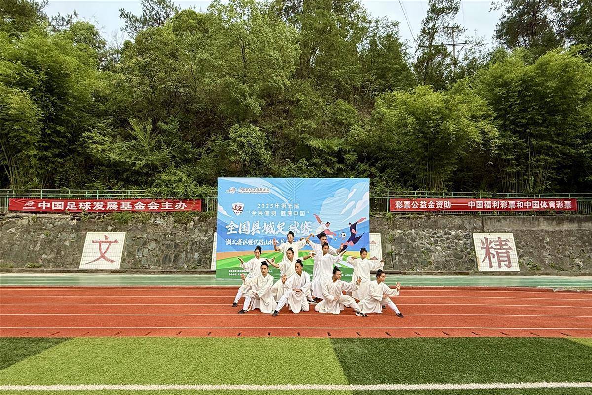 联赛启动仪式开始,来自十堰俊豪足球俱乐部的巴西A级教练莱奥献上精彩足球秀,娴熟的控球与灵动的技巧点燃全场,让观众直观领略足球运动的魅力,更激发了众人参与的热情。武当山玄门武术院的师生们献上《风声太极》表演,刚柔并济的招式尽显武当文化韵味;武当山玉虚宫太极队演绎的《武当九势太极拳》,进一步展现武当武术的深厚底蕴,赢得阵阵掌声。文化展演与体育赛事的巧妙结合,让现场观众感受着地域文化与体育活力的碰撞之美。