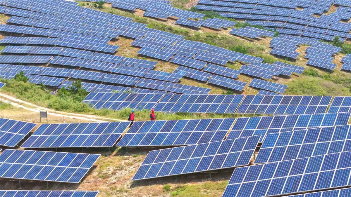 国网湖北电力员工检查光伏发电设施运行状况。(吴绪章 摄)