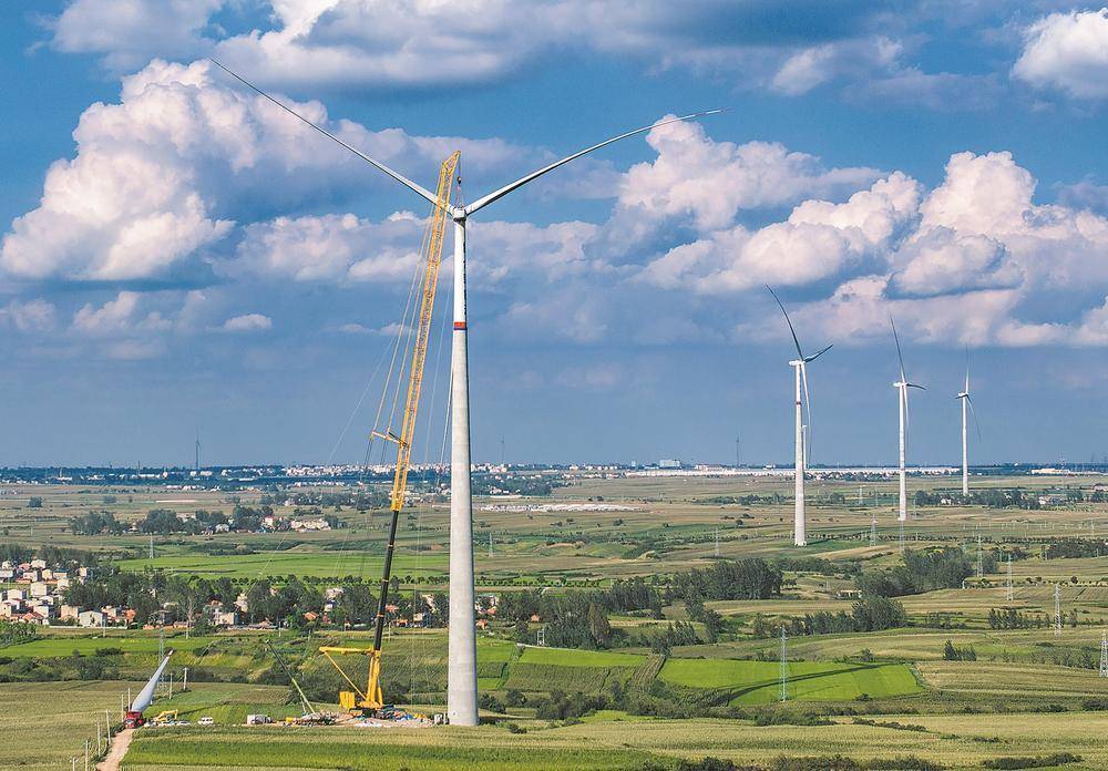 襄州区黄集镇风电风机叶片吊装作业正在进行。(杨东 摄)