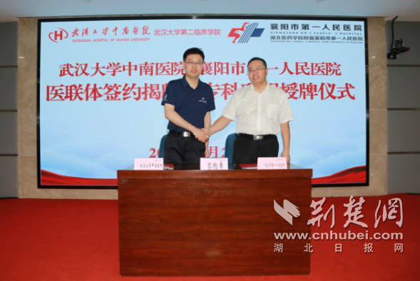 荆楚网(湖北日报网)讯(通讯员 龚波、宁婧)8月28日,武汉大学中南医院与襄阳市第一人民医院医联体签约揭牌暨专科联盟授牌仪式在襄阳举行,标志着两院紧密型医疗联合体正式建立,双方将携手推动优质医疗资源下沉,共同提升区域医疗服务能力,为“健康湖北”建设注入新动力。