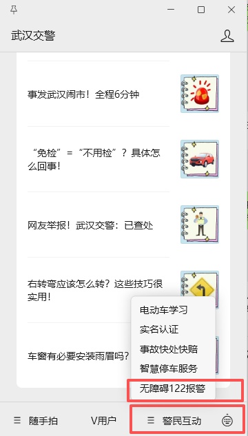 为进一步关爱和服务于听障人士特殊群体,8月25日起,“武汉交警”微信平台上线“无障碍122报警”服务模块,为广大听障人士搭建起一条高效、安心的“绿色通道”。