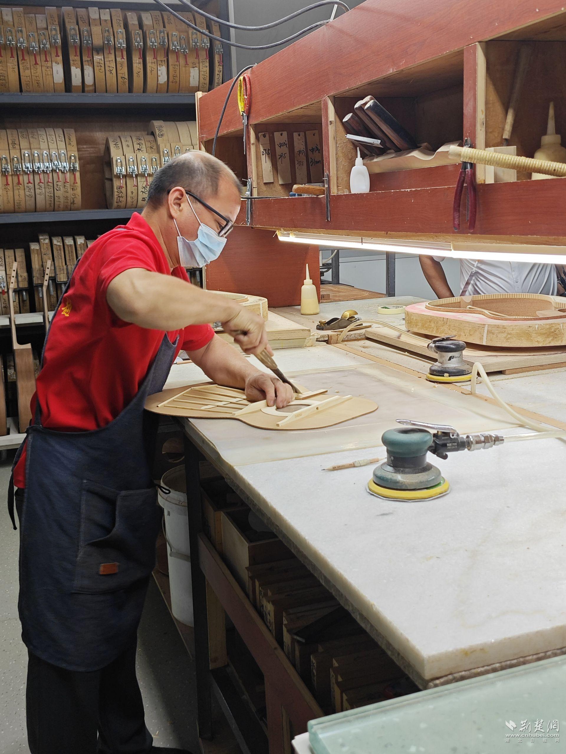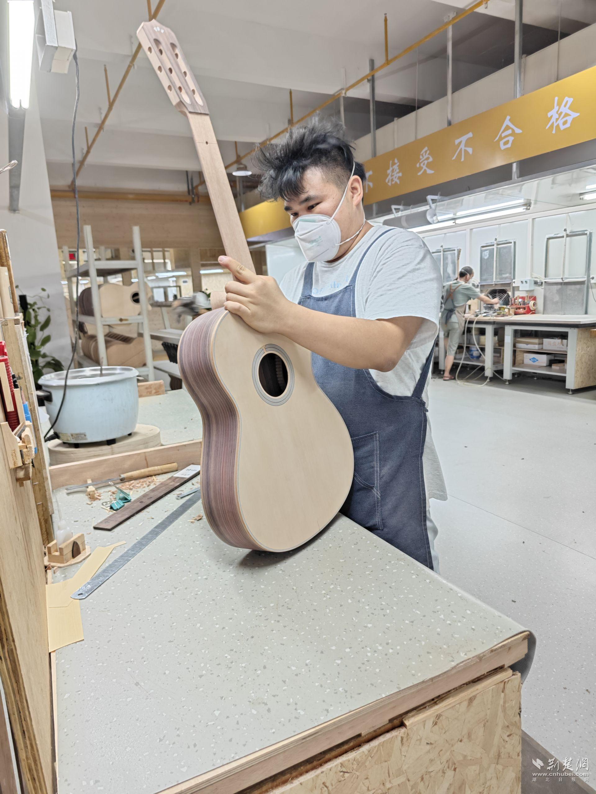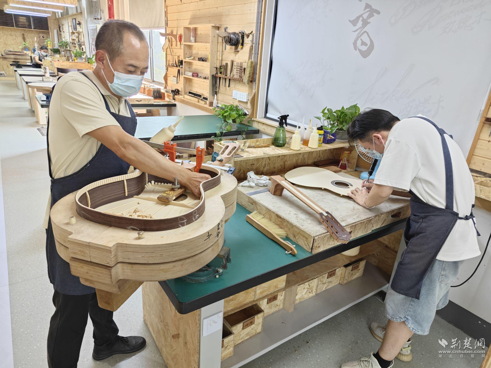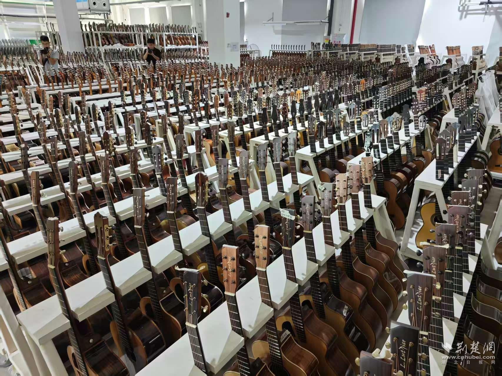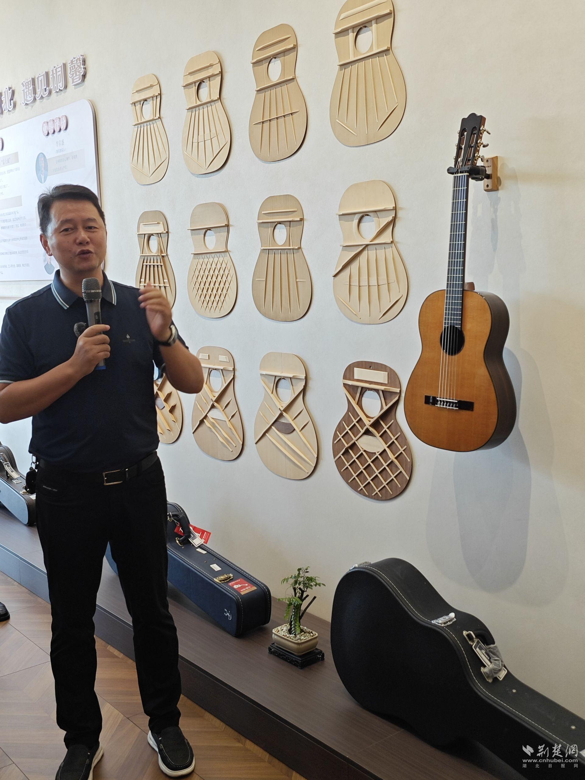 在“腾笼换鸟”政策下,近年来,一些制造业陆续从广州城区迁出。松滋的文化产业招商团队,立即联系上汪锋华,在详细了解家乡松滋的招商引资政策以及返乡创业环境后,汪锋华立刻决定回到家乡。2023年9月,桐馨乐器公司总部及生产车间迁往松滋,主要生产高端吉他,是全国唯一全品类高端木吉他生产企业。2024年,桐馨乐器出口高端吉他1.2万把,其中顶级型号出厂价达5.98万元/把,年创产值1.5亿元。