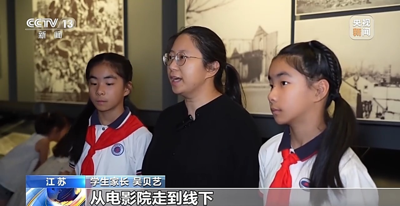 学生家长 吴贝艺:从电影院走到线下,小朋友的话更能够近距离接触到这些,感觉到能够触摸到这些历史。