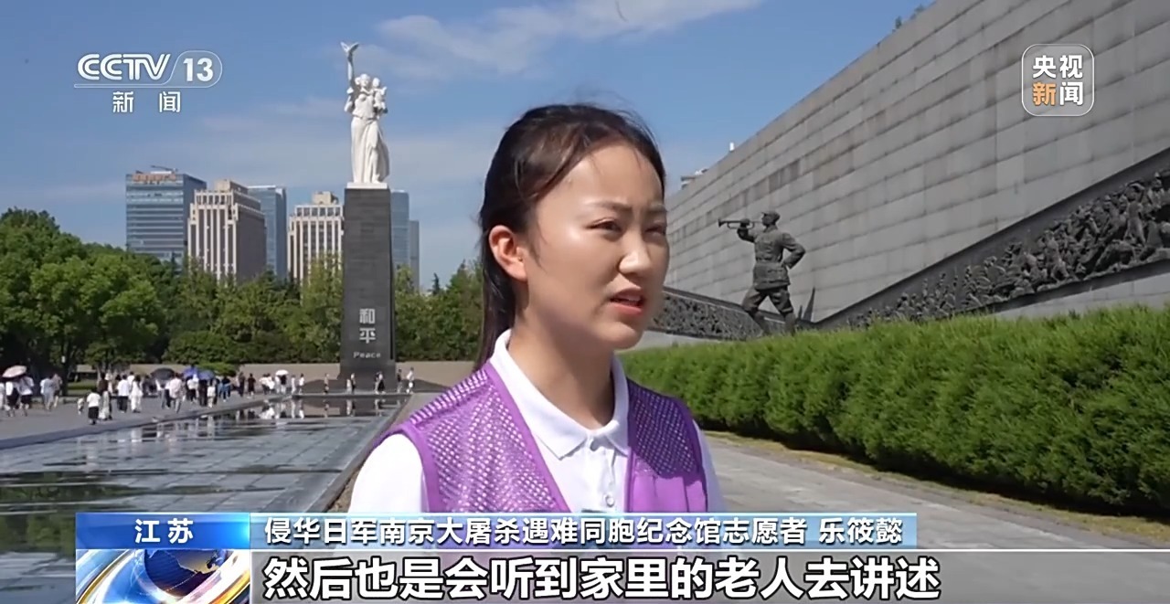 侵华日军南京大屠杀遇难同胞纪念馆志愿者 乐筱懿:我是土生土长南京人,然后也是会听到家里的老人去讲述,包括抗战的历史和南京大屠杀当时的一些情况。首先会感到非常震惊,当志愿者了之后,会感受到不仅是一份心情的沉重,也是一种责任在里边,更加有使命感了。