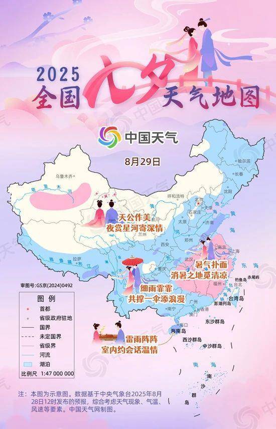 今天我们迎来了我国传统佳节中最浪漫的七夕节。一场甜度满分的约会正待开启,你想好去哪里赴约了吗?中国天气网推出2025全国七夕天气地图,看看你那是天公作美适合夜赏星河?还是细雨霏霏适宜伞下漫步?