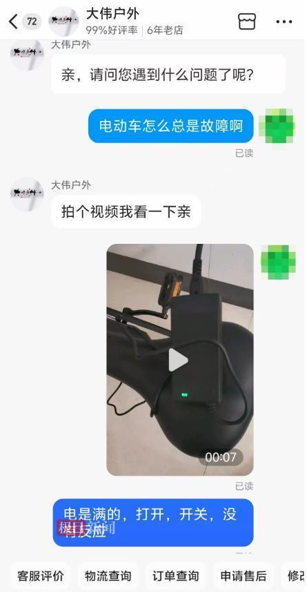 3月10日,他联系“大伟户外”的售后客服,说明车辆故障情况。对方表示:“您可在当地找维修店处理,维修费用由我们承担。”可明先生问遍了家附近的电动车维修店,均表示“未接触过该品牌,市场上找不到匹配的配件,无法维修,怕维修后出现更多问题。”无奈之下,3月20日,他再次找到客服,客服告诉他:“上次您反馈后,我们已联系厂家,厂家同意处理问题,但需要您自行承担寄回厂家的运费。”这一回复让明先生不满且困惑:“车辆买回来几乎没怎么用就出现故障,且并非我人为损坏,现在返厂维修还要我承担运费,这合理吗?”他多次与客服沟通,希望店铺承担运费,却始终未能达成一致。