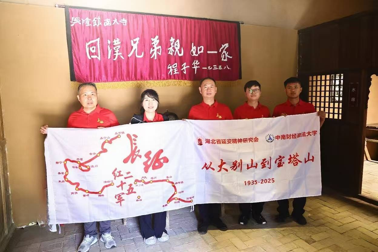 8月29日获悉,中南财经政法大学重走红二十五军长征路团队在省延安精神研究会指导下,历时16天,调研鄂豫陕甘宁五省的15个县市、探访27处红色场馆,录制系列思政微课。团队以亲身经历、亲自感悟、亲手提炼、亲切讲授、亲力奉献的“五亲模式”传承红色基因,将新时代成就融入“大思政课”。