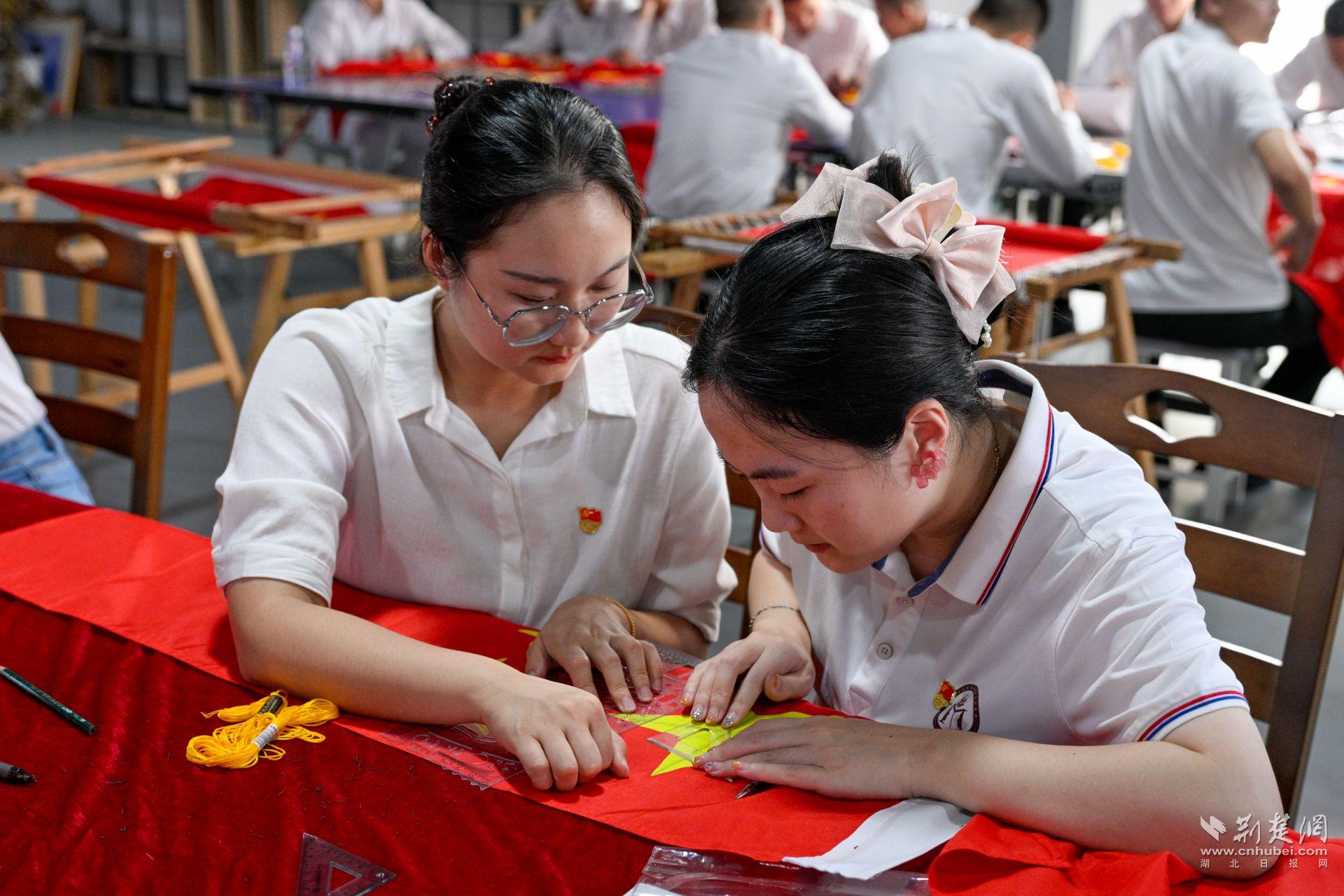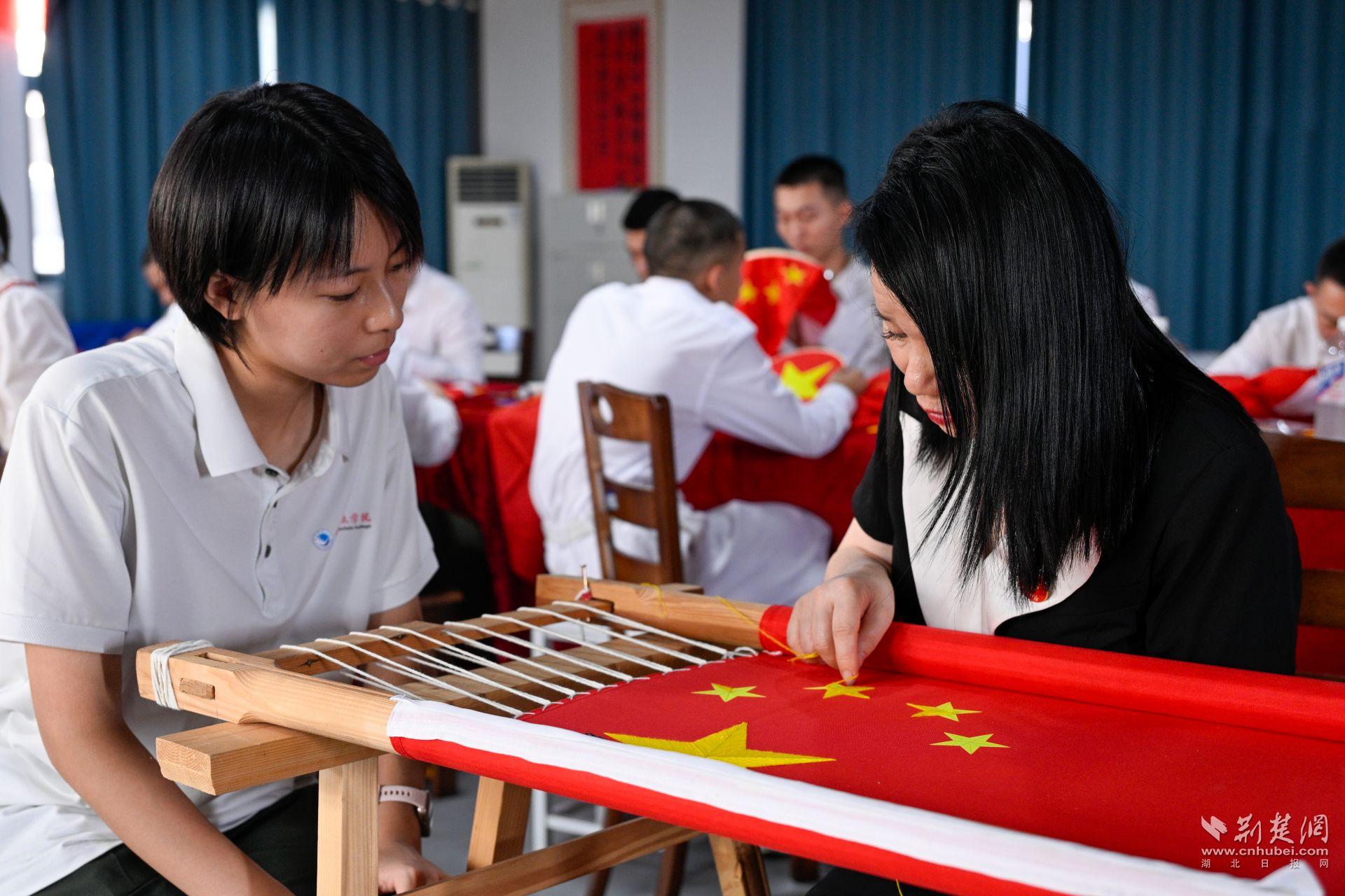 荆楚网(湖北日报网)讯(通讯员任娟、尤亮、孙义尧)致敬革命英雄,传承红色基因。近日,武昌职业学院组织百名师生开展“绣红旗·向英雄献礼”活动,以非物质文化遗产汉绣为载体,向中国人民抗日战争暨世界反法西斯战争胜利80周年致以敬意。