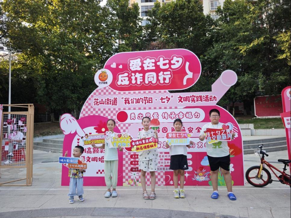 8月28日下午,由花山街道新时代文明实践所主办、橘园社区新时代文明实践站承办的“我们的节日·七夕”主题系列活动在花山街道新时代文明实践广场顺利举行。本次活动以“爱在七夕 反诈同行”为主题,将传统七夕民俗、反诈宣传和便民服务有机融合,武汉农村商业银行土桥支行也受邀参与防诈骗宣传,吸引大量居民热情参与。