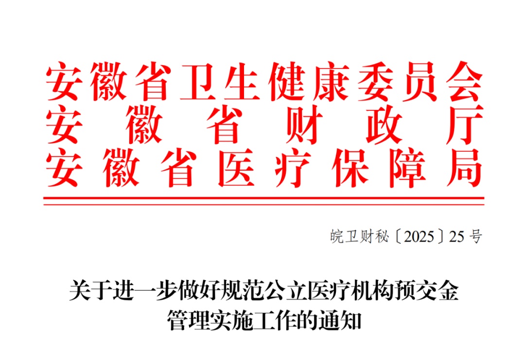 预交金是指患者在门诊或办理住院前预先支付的一笔押金,作为后续治疗费用的一种保障,这也是公立医院传统的收费方式。不久前,安徽省卫健委、财政厅、医保局联合印发《关于进一步做好规范公立医疗机构预交金管理实施工作的通知》,明确全省公立医疗机构自2025年3月31日起全面停止收取门诊预交金,同时在12月31日前完成存量门诊预交金的资金清算、退款工作。