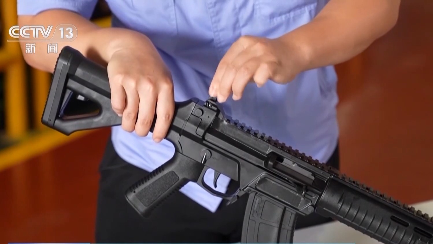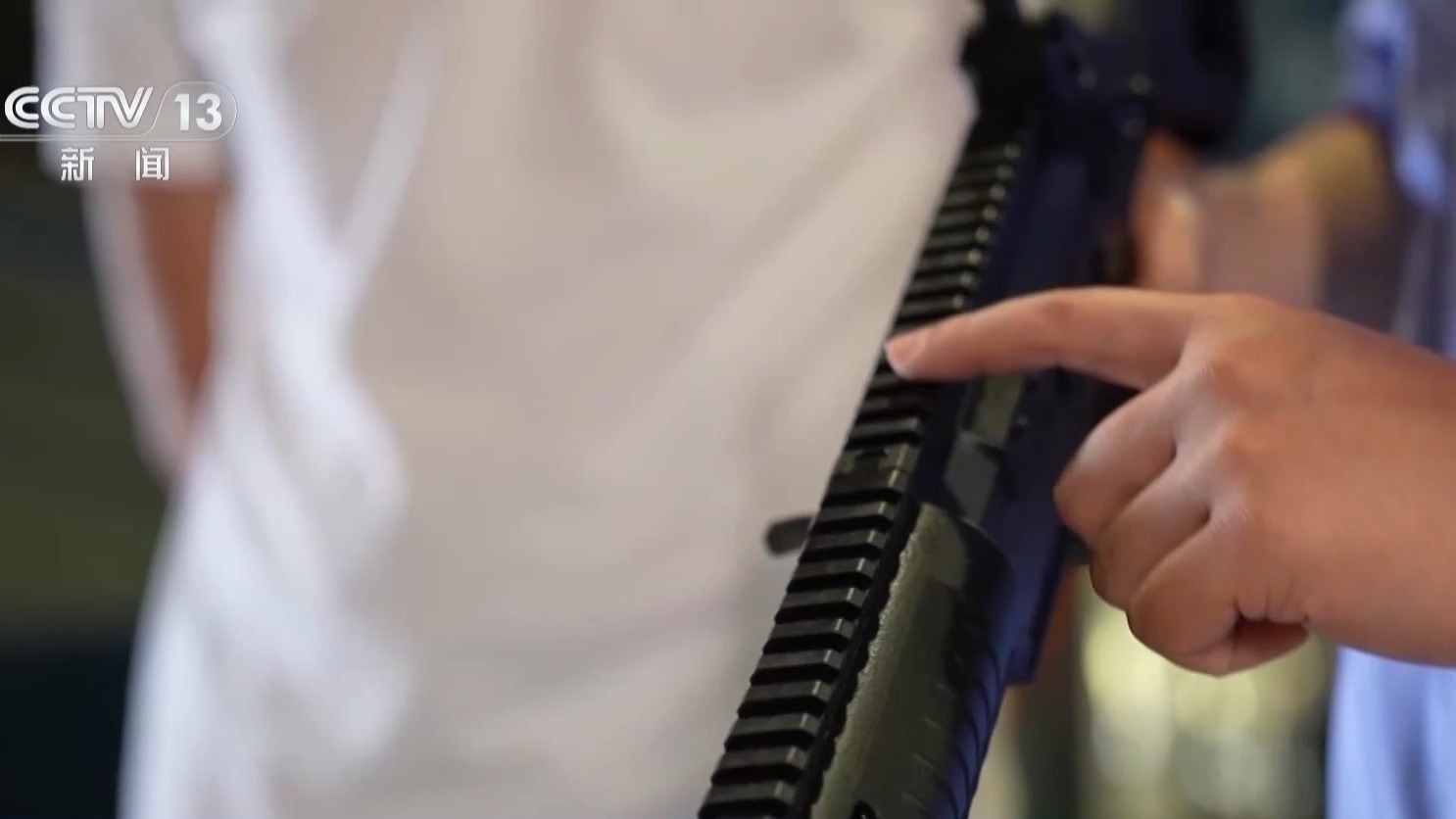中国兵器工业集团建设工业研发人员 王洋:这一代枪械它既有高精度也有高寿命,同时可靠性也非常高,人机功效也非常好。这支枪护木是塑料的,一般而言不容易那么烫,里面一层护木是金属的,它实际上就起到隔热的作用。