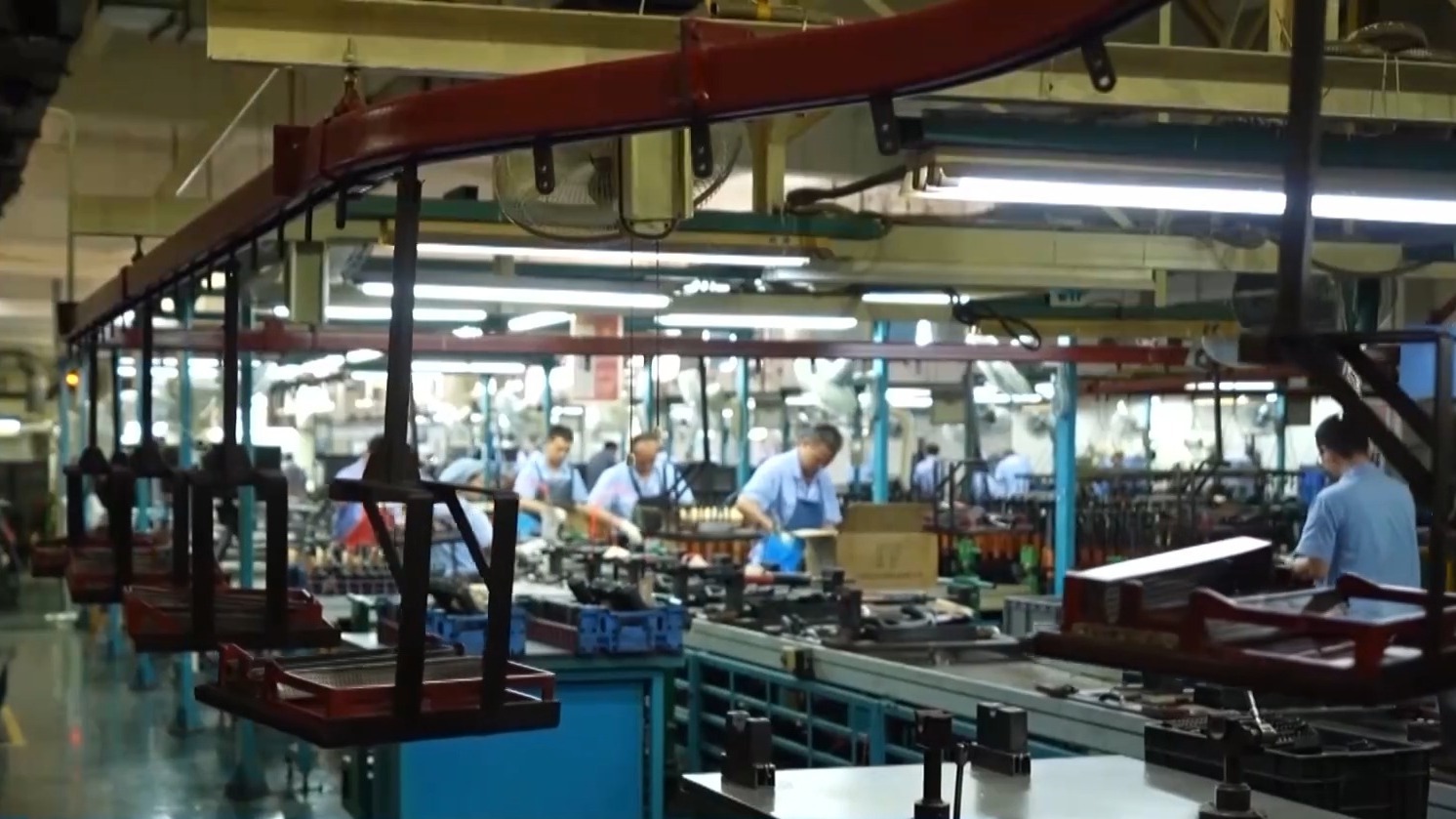 王晓锋:这是我们自动化装配的一条生产线,以前是我们一个班组装配。一个班组10来个人一天的工作量,现在就靠一台设备就可以完成了。