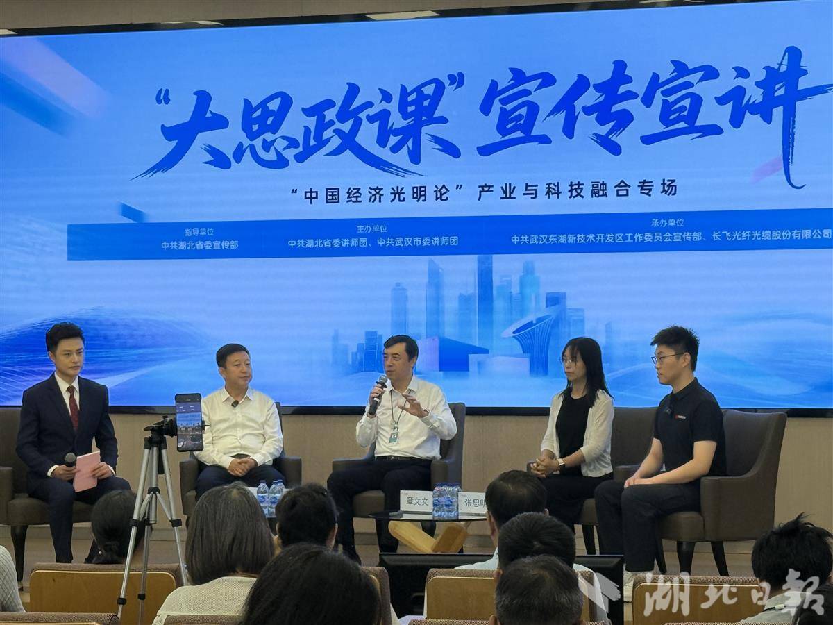 8月29日,省委宣传部指导,省委讲师团、武汉市委讲师团联合主办的“大思政课”宣传宣讲之“中国经济光明论”产业与科技融合专场活动在长飞光纤光缆股份有限公司举行,华中科技大学马克思主义学院副院长李建国现场为大家剖析科技创新与产业发展之间的关系。