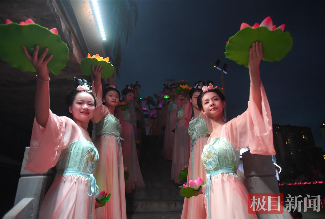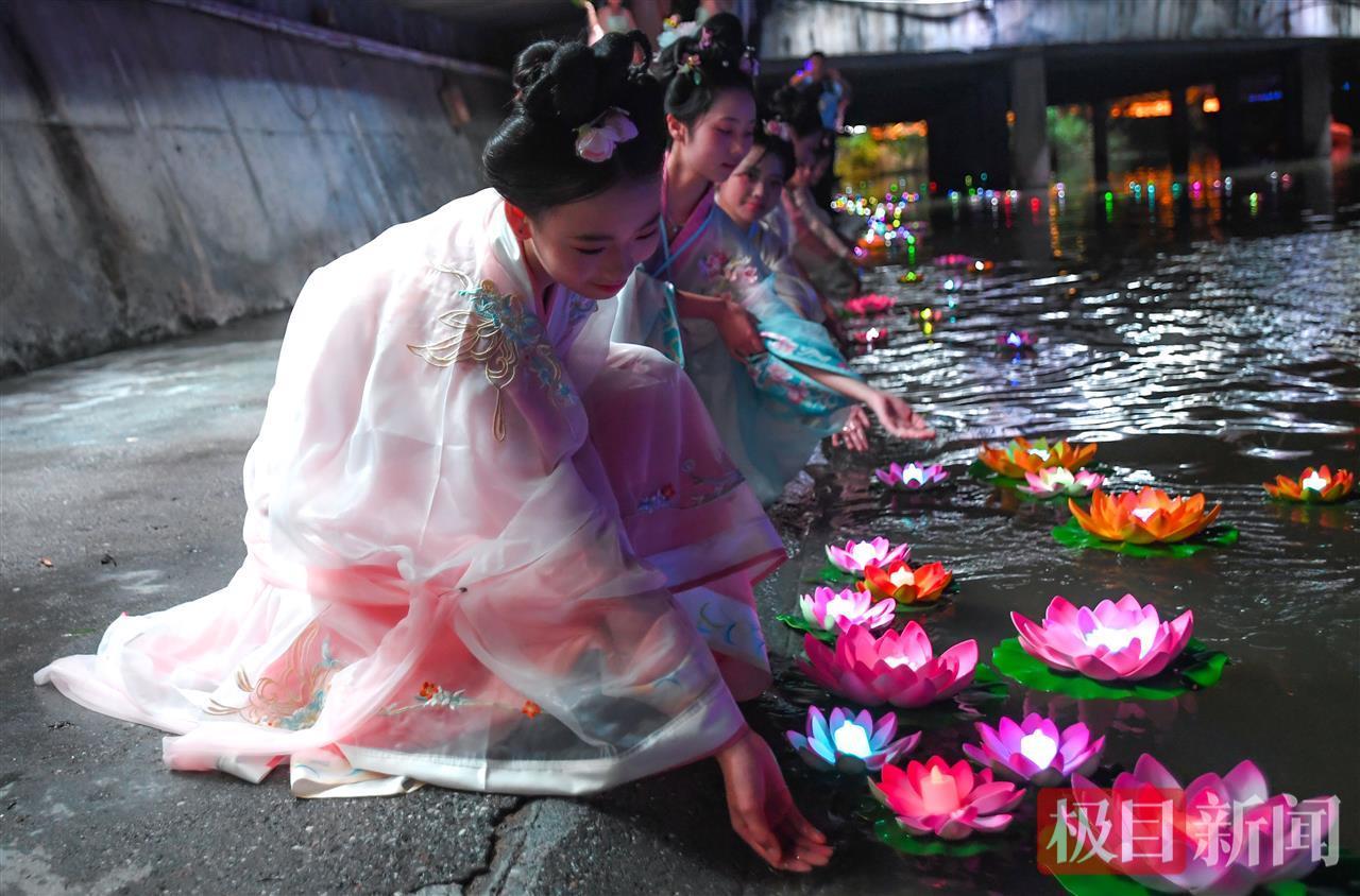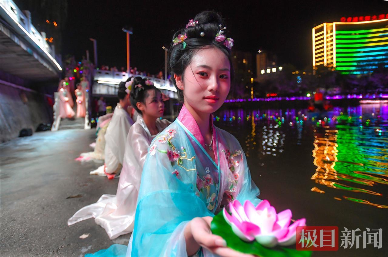 银汉迢迢夜未央,河灯点点泛星芒。8月29日傍晚,湖北省十堰市郧西县天河之畔,晚风轻拂,水波潋滟。在郧安桥边,一场延续千年传统的七夕河灯祈愿仪式缓缓拉开帷幕。27位身着汉服、宛如仙子的舞者在乐声中翩翩起舞,与缓缓漂流的莲花河灯交相辉映,仿佛为牛郎织女的鹊桥相会指引方向,也为这场“中国七夕文化之乡”的年度盛典画上浓墨重彩的一笔。