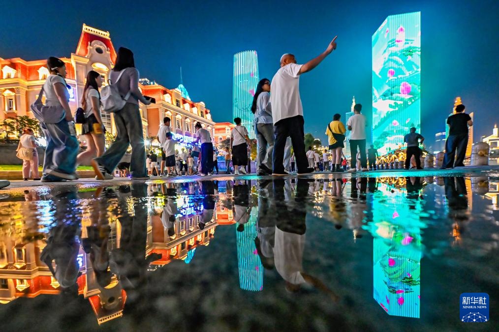 8月29日,人们在海南保亭七仙文化广场嬉水。