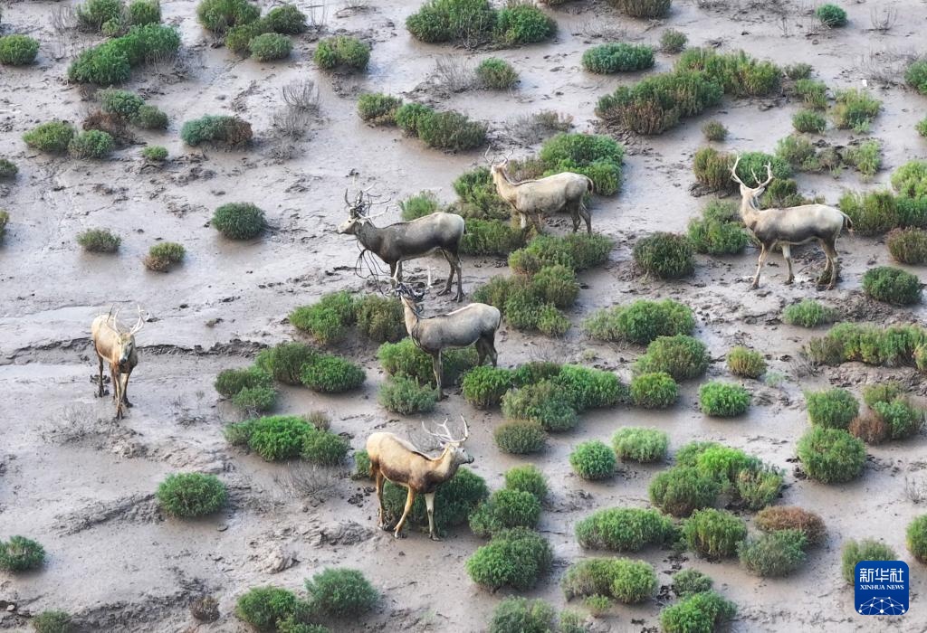 8月25日,野生麋鹿栖息在川水湾(无人机照片)。
