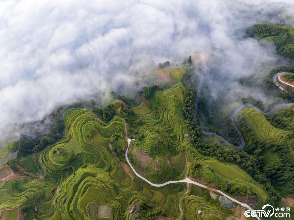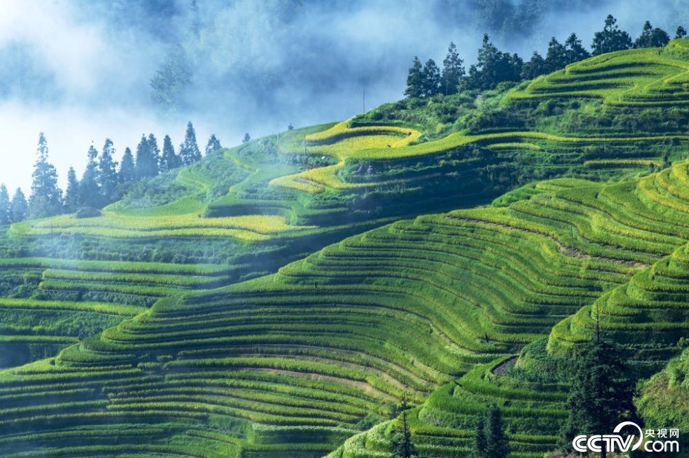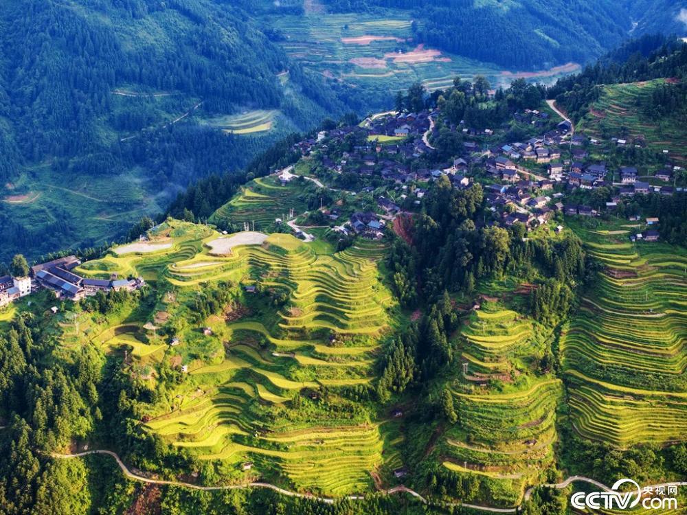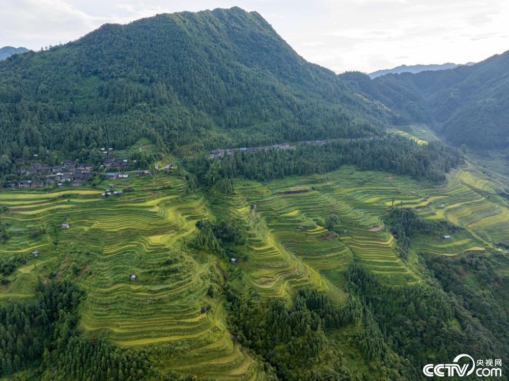 初秋时节,地处贵州省黔东南苗族侗族自治州从江县的月亮山梯田水稻迎来成熟期,层层叠叠的田野染上金黄,与缭绕的云雾、古朴的村寨、苍翠的青山、蜿蜒的河流及公路共同构成一幅壮丽的秋收画卷。 视觉中国