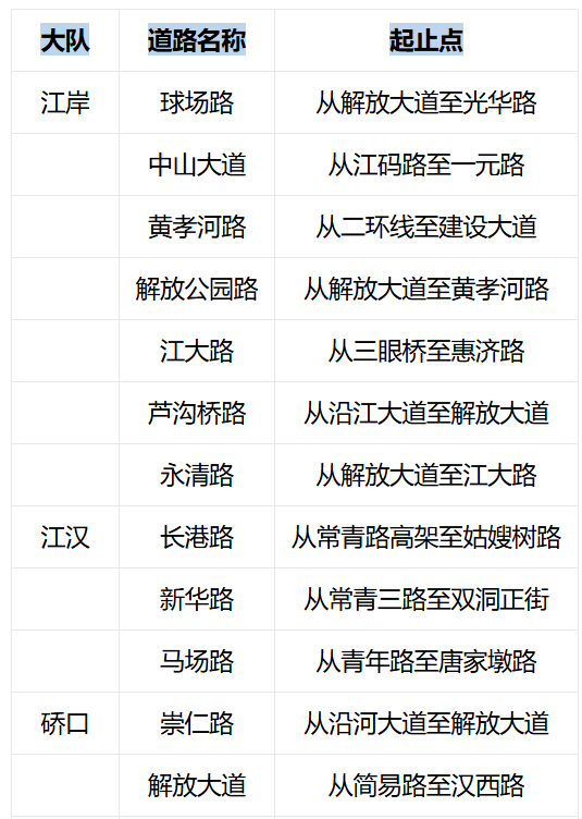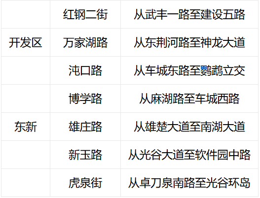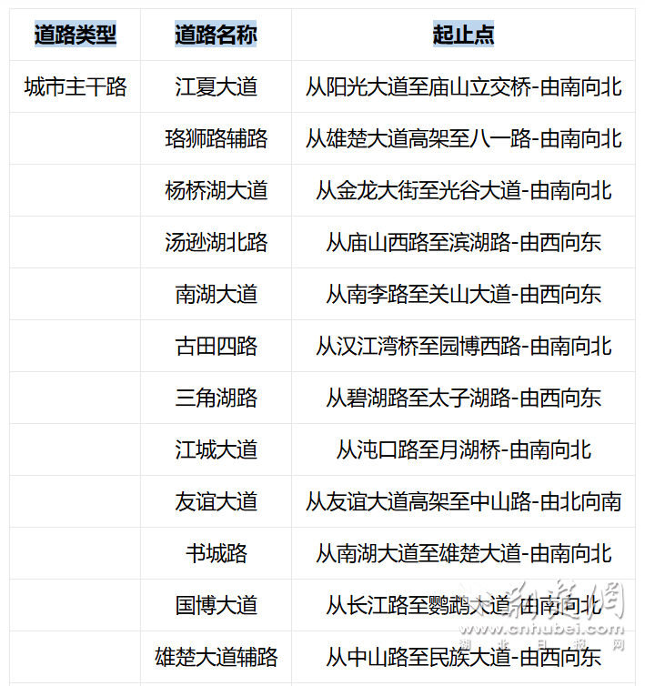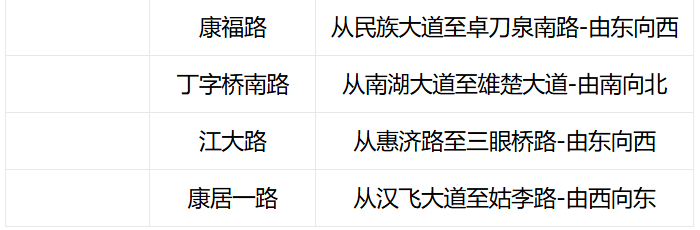 主次干道有江夏大道(阳光大道至庙山立交南向北)、珞狮路辅路(雄楚大道至八一路南向北)、百步亭花园路、杨桥湖大道、南湖大道等路段较为拥堵。