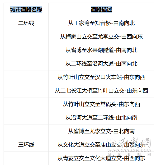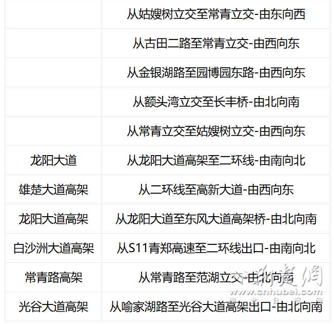城市快速路的二环线(王家湾至知音桥南向北)、三环线(文化大道立交至庙山立交西向东)、龙阳大道高架、雄楚大道高架、白沙洲大道高架等通行压力也较大。