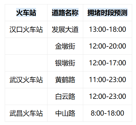 高校迎来开学,火车站周边拥堵程度也将更为明显,如武汉站的黄鹤路、汉口站的发展大道和金墩街等。